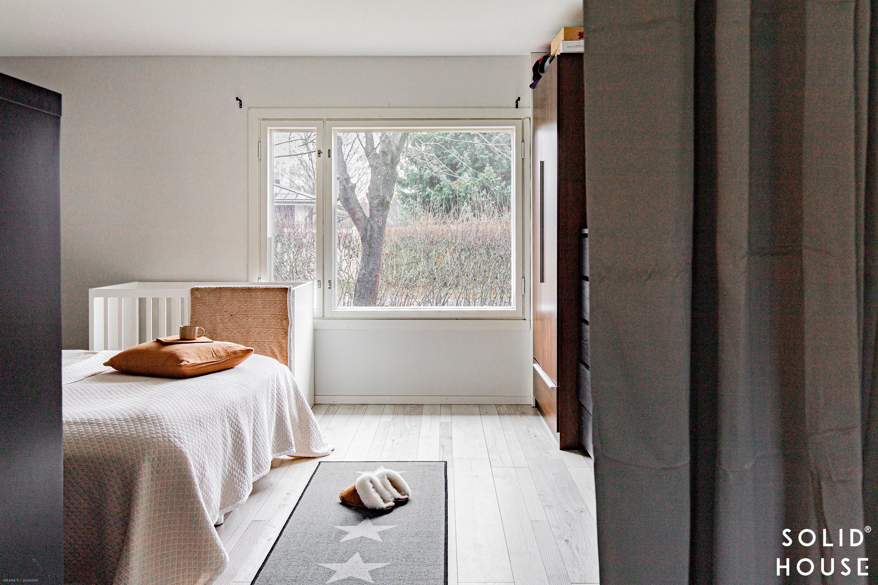 Kolme makuuhuonetta tarjoavat monipuoliset mahdollisuudet perheen tarpeisiin, ja päämakuuhuone sijaitsee erillään muista, tuoden rauhaa ja yksityisyyttä. Kylpyhuone on tilava ja kauniisti remontoitu, ja sauna sekä pesutilat uusittiin vuonna 2018, kylpyamme tuo sopivaa glamouria arkeen.