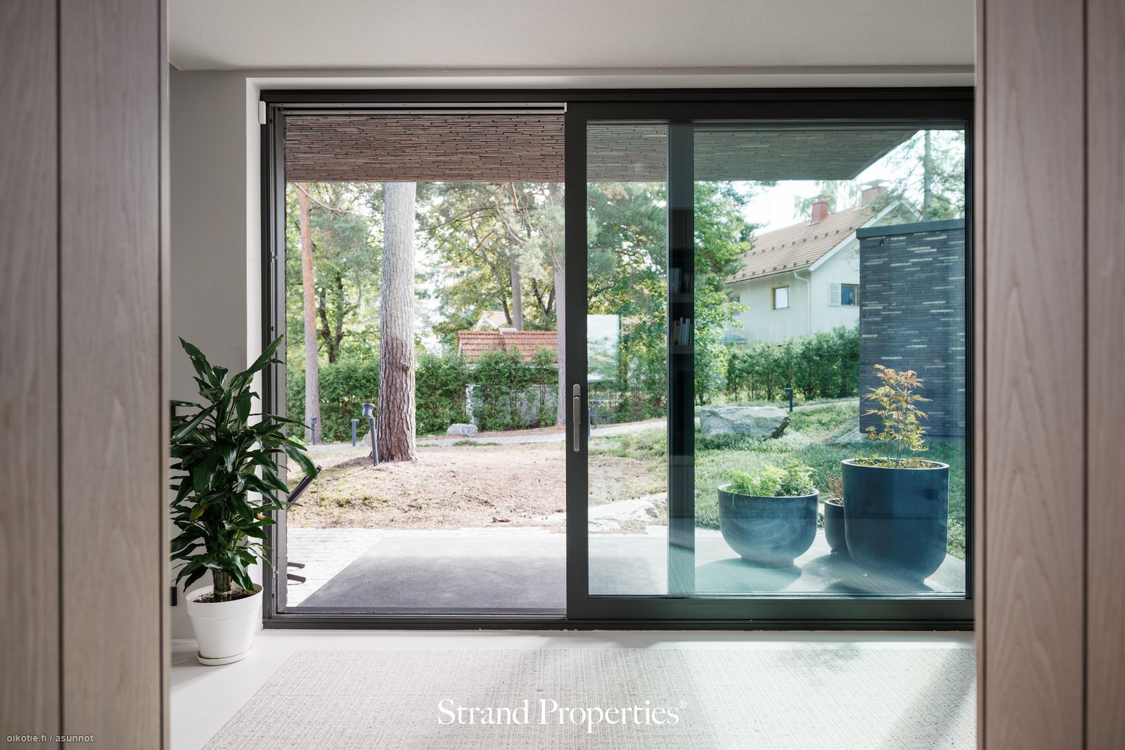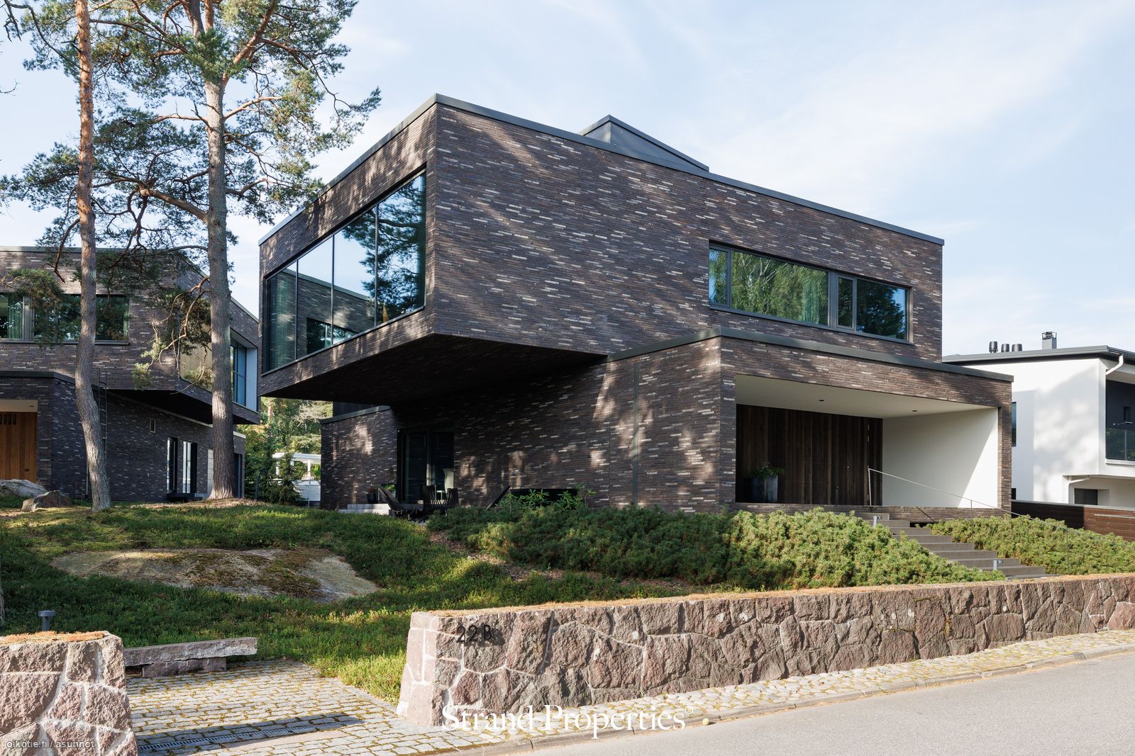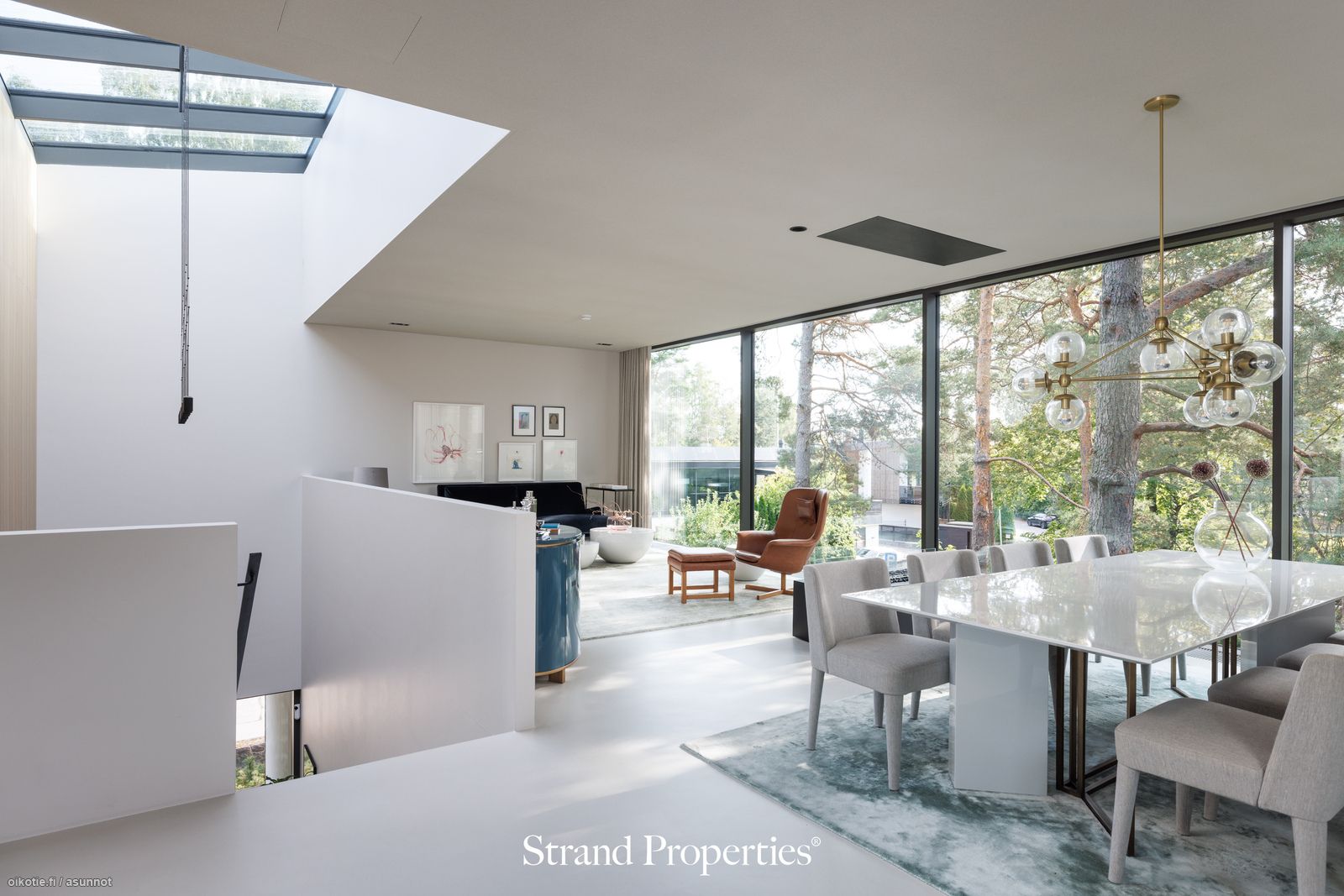 Tämä upea paikalleen valettu erillistalo on arkkitehdin todellinen taidonnäyte, jossa huippulaadukkaat materiaalit ja tyylikäs design yhdistyvät toiminnallisuuteen. Heti sisään astuessa kohtaa vaikuttavan valoisan sisäänkäynnin, jossa huonekorkeus on lähes 10 metriä, mikä luo ainutlaatuisen ja luomoavan vaikutelman.