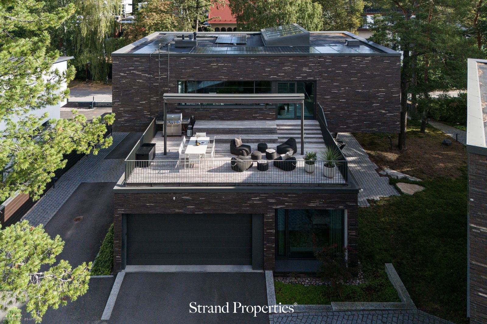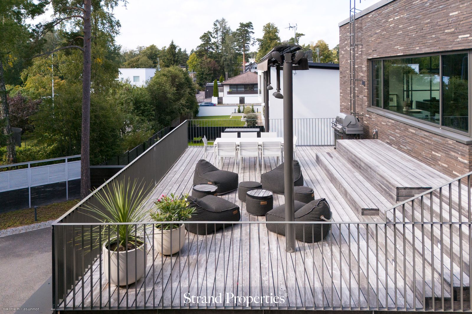 - Upeat vehreät näkymät kaikkiin ilmansuuntiin. Valtavalta kattoterassilla auringonpaisteesta voi nauttia koko päivän aina auringonlaskuun asti. Laadukas 7 metriä pitkä Markilux -merkkinen markiisi ja terassilämmittimet.