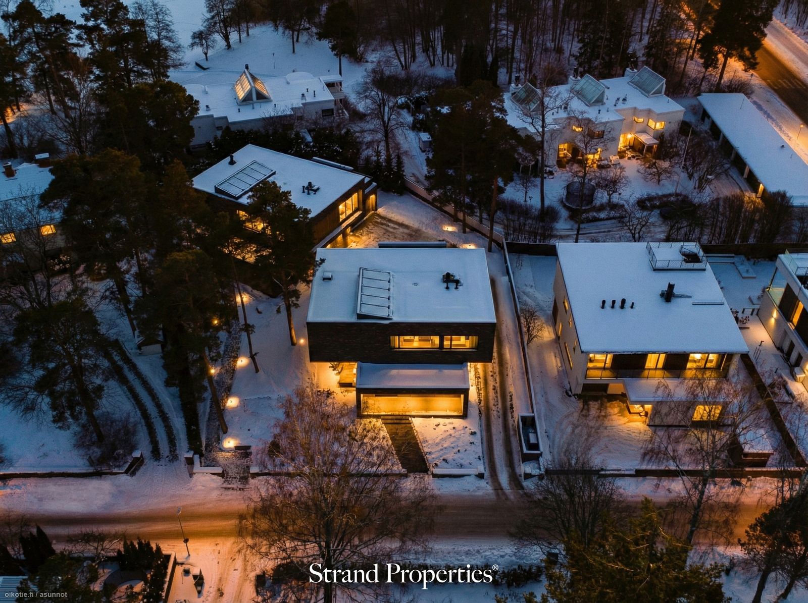 - Kaikki ikkunat ja ovet Schukon, sävetetty arkkitehdin ohjeiden mukaisesti. Ovissa sormenjälkitunnistimet. Pääoven tasanne ja portaat ovat sähkölämmitteiset, eli talvella pysyvät sulana. Lämmityksen saa tarvittaessa pois päältä. Muuta kauppaan kuuluvaa: Voidaan myydä osittain kalustettuna, tästä sovitaan erikseen. Upea valaisin kattoikkunan alla portaikon kohdalla. Puketumishuoneen kattovalo.