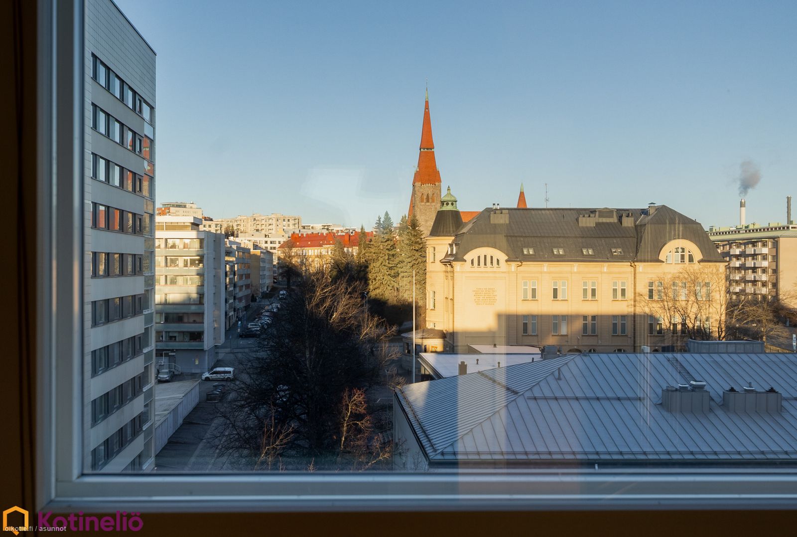 - Kulmahuoneisto, näkymät Tuomiokirkon suuntaan pohjoiseen, keskustan suuntaan etelään.