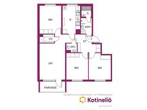 Tämä koti tarjoaa erinomaiset puitteet perheelle. Pohjaratkaisu on toimiva ja tilat käytännölliset. Tilavasta olohuoneesta on käynti lasitetulle parvekkeelle. Keittiö on käytännöllinen, makuuhuoneita on kolme ja säilytystilaa runsaasti kaapistojen sekä vaatehuoneen ansiosta. Asunnossa on erillinen wc sekä kylpyhuone ja sauna, jotka ovat juuri valmistuneet taloyhtiön LVIS-remontin yhteydessä.