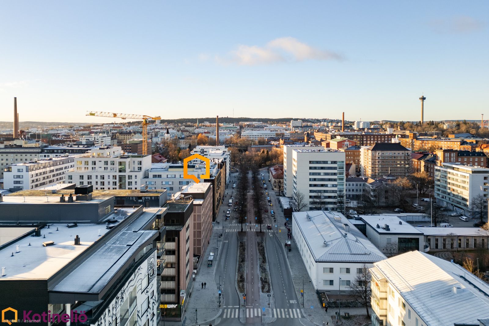 Tampereen keskustassa, monipuolisten palveluiden äärellä, on myynnissä ylimmän, kuudennen kerroksen valoisa, läpitalon päätyhuoneisto.