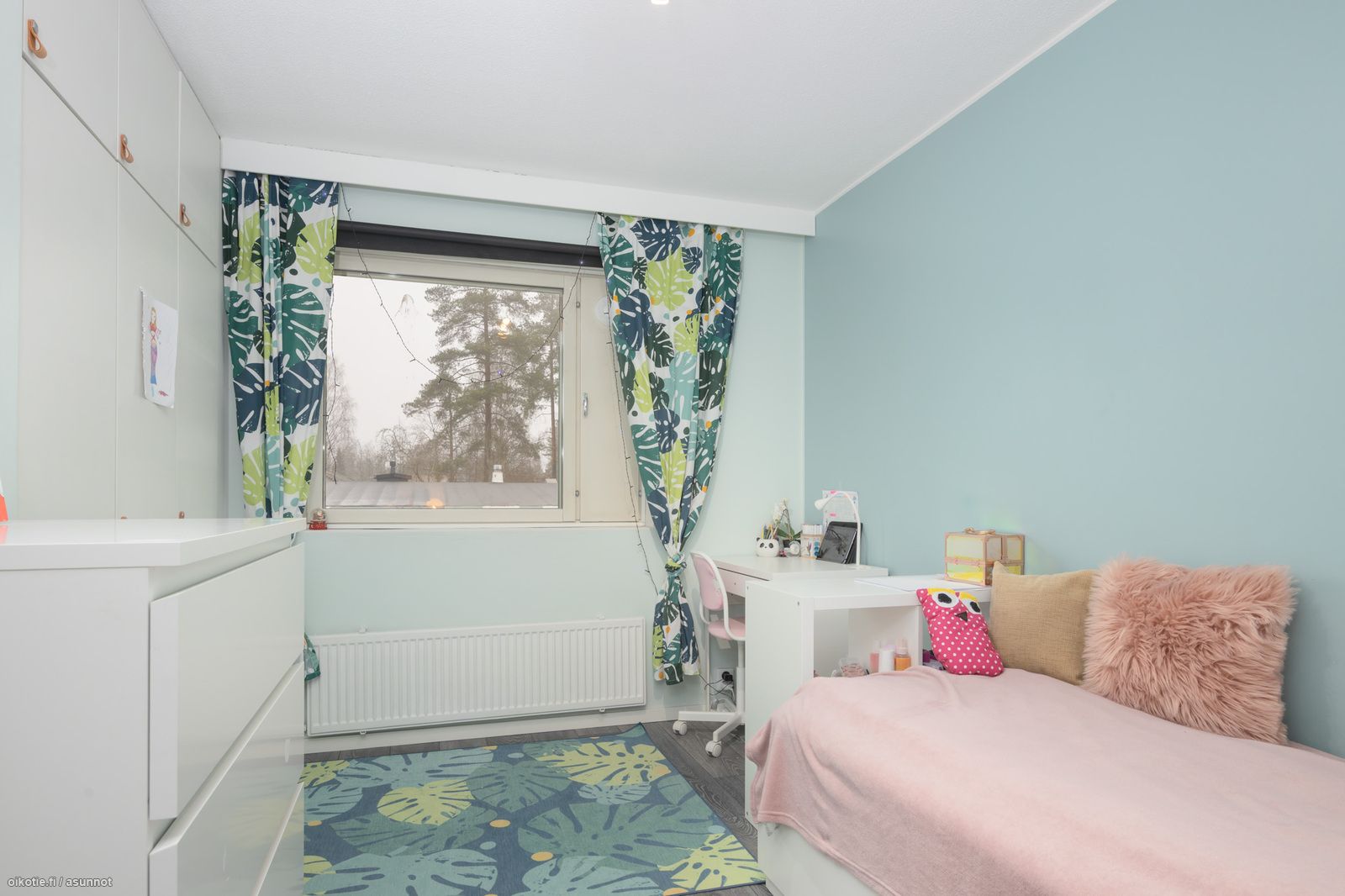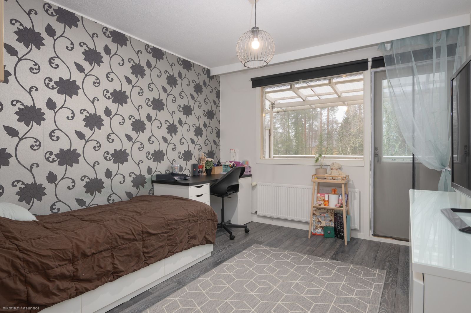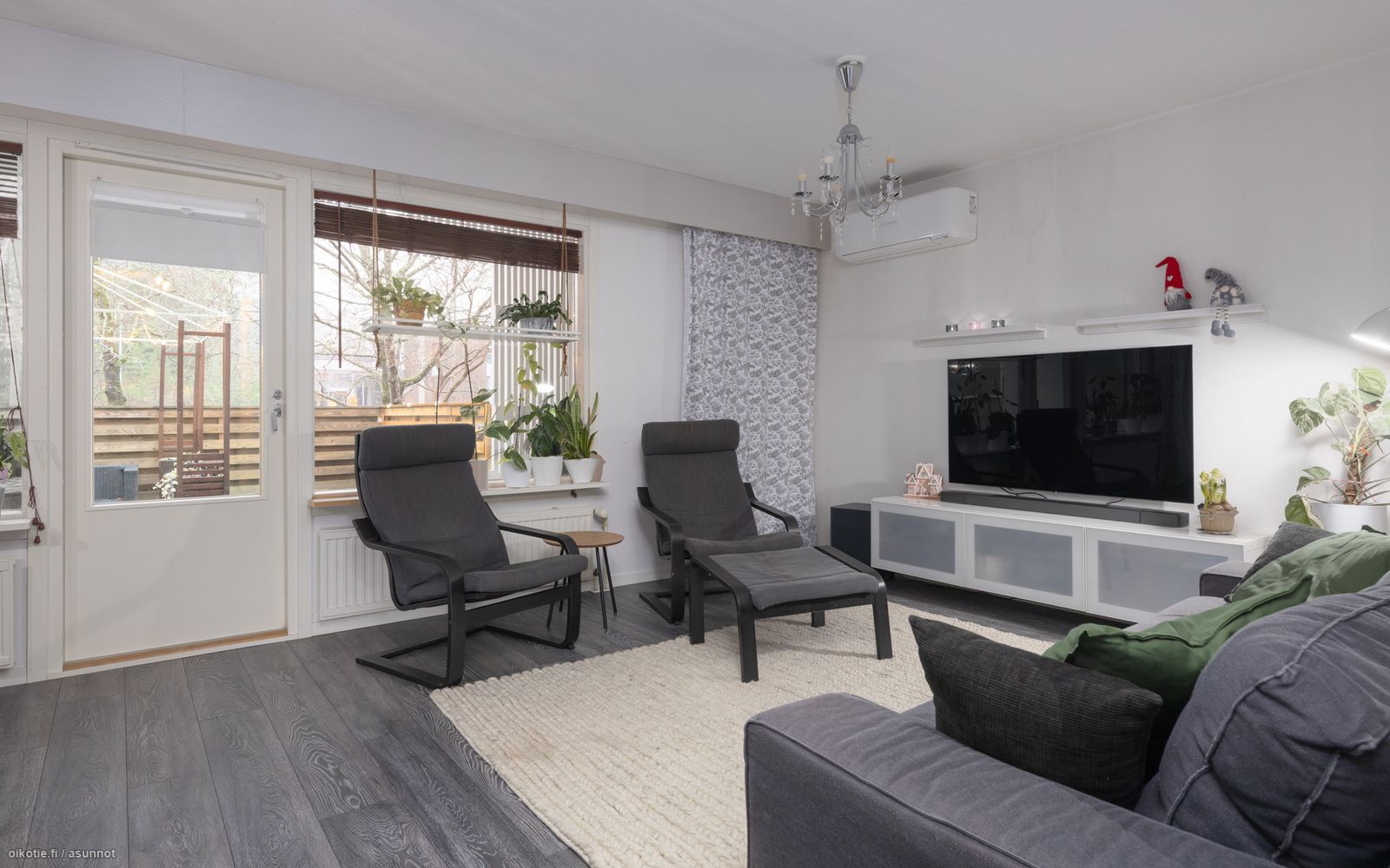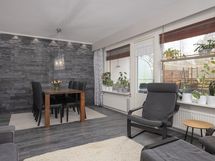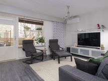 - valoisa ja tilava, ilmalämpöpumppu, käynti osittain katetulle terassille / lounaaseen suuntautuvalle takapihalle