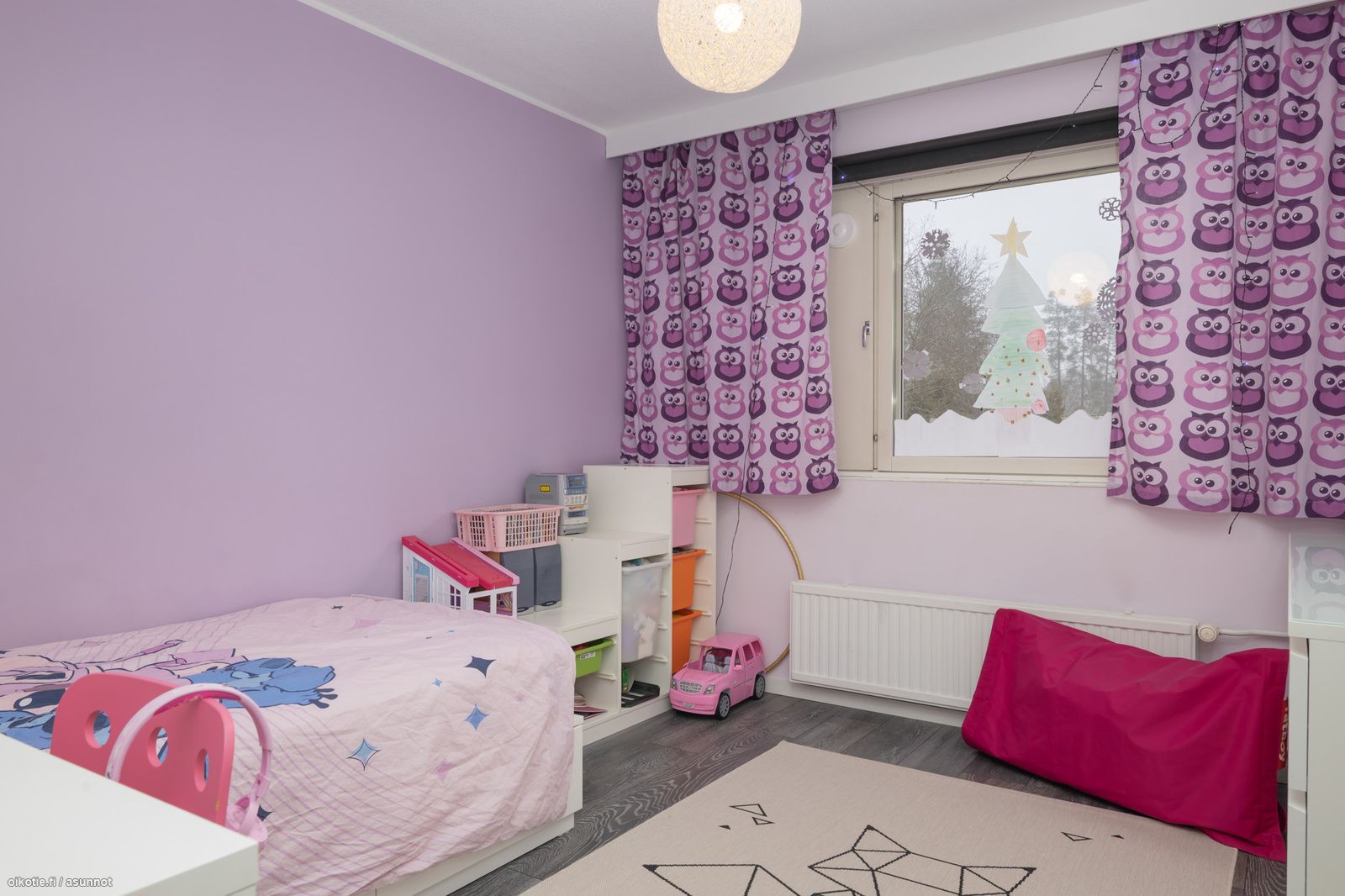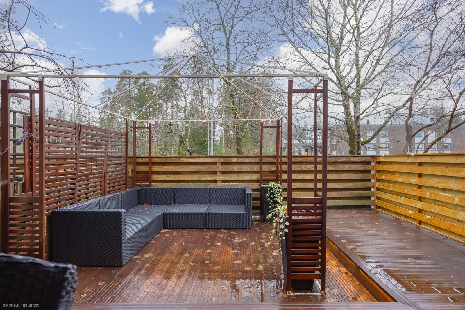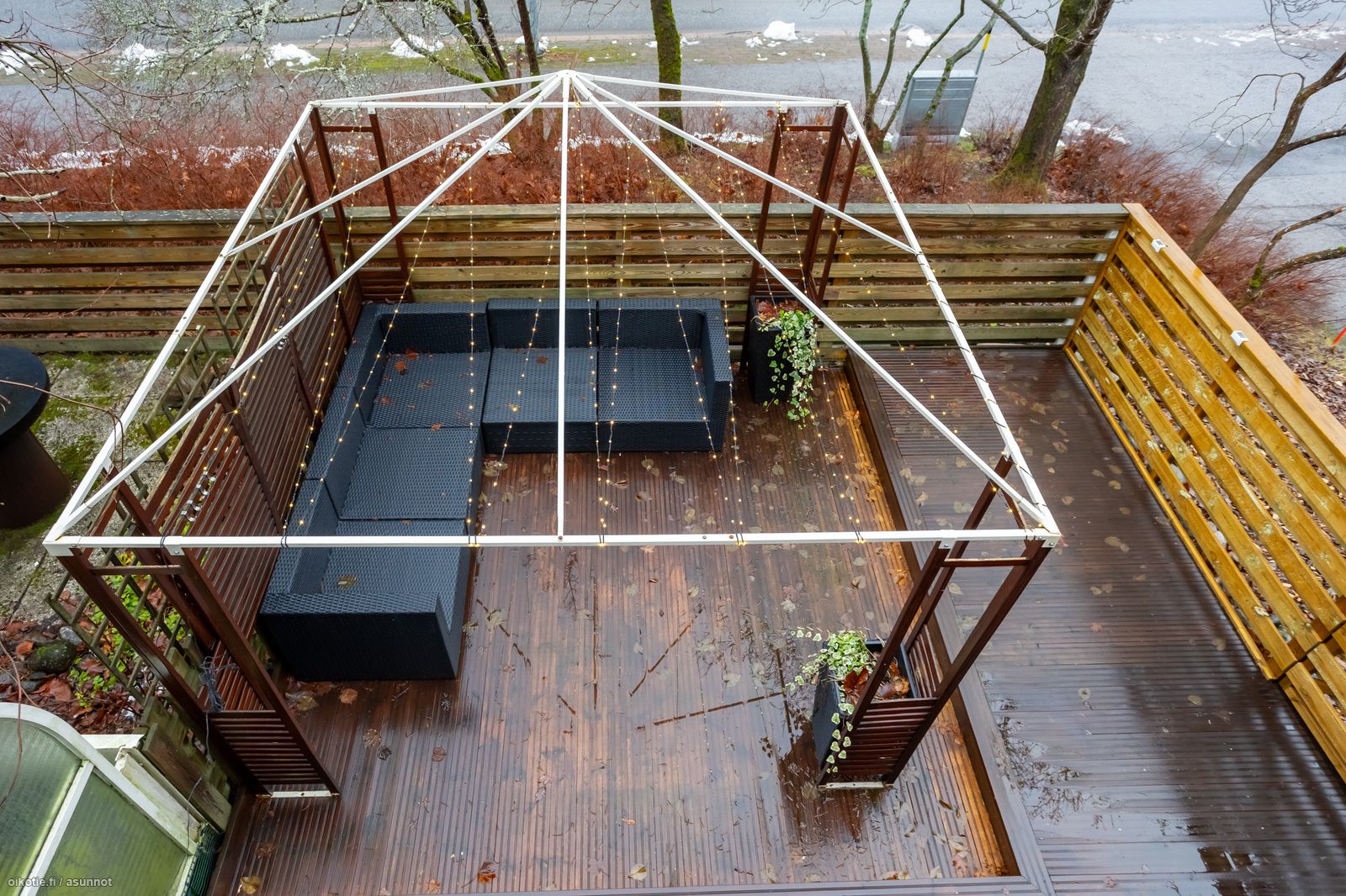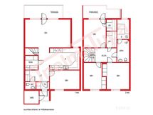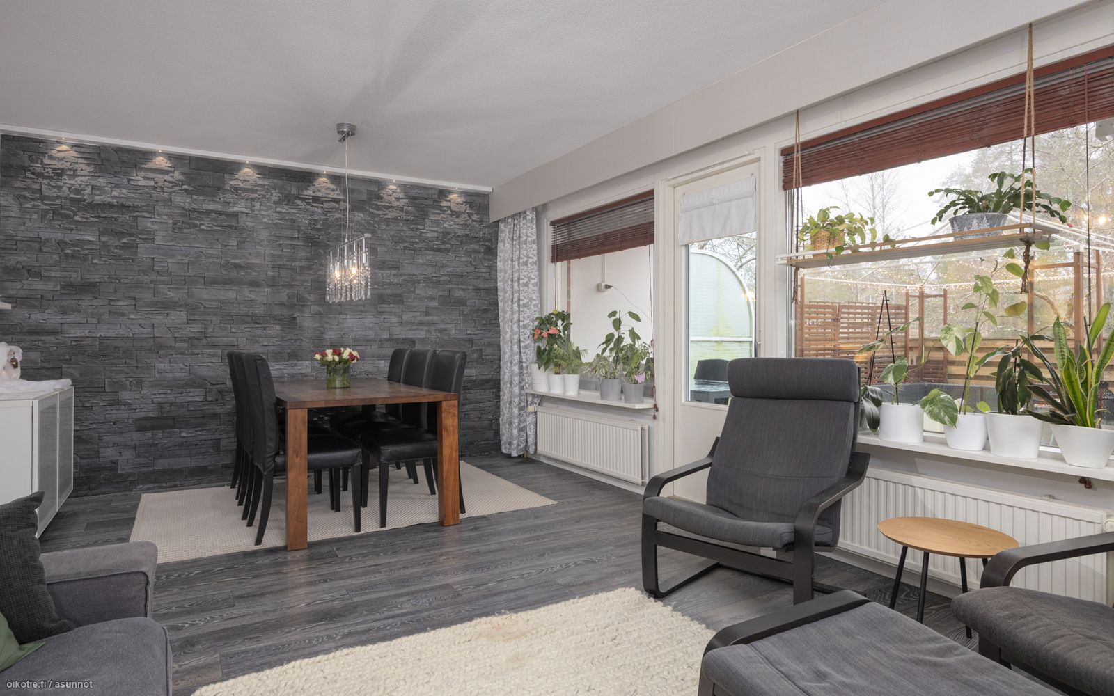 - valoisa ja tilava, ilmalämpöpumppu, käynti osittain katetulle terassille / lounaaseen suuntautuvalle takapihalle