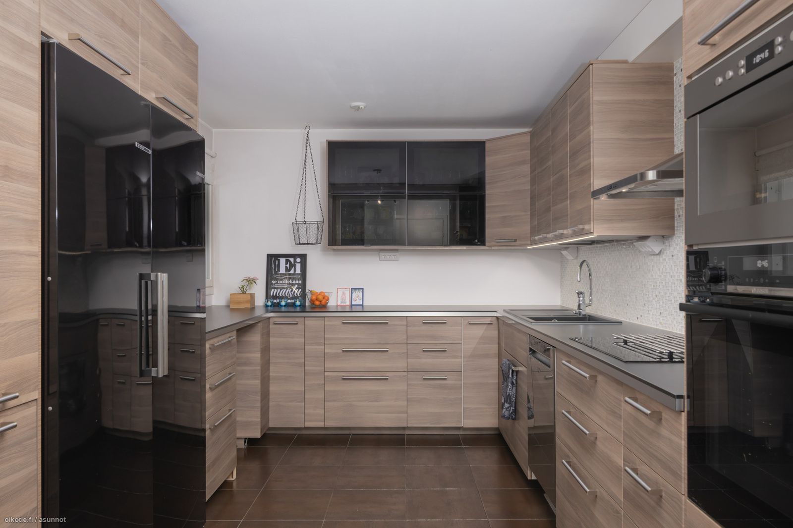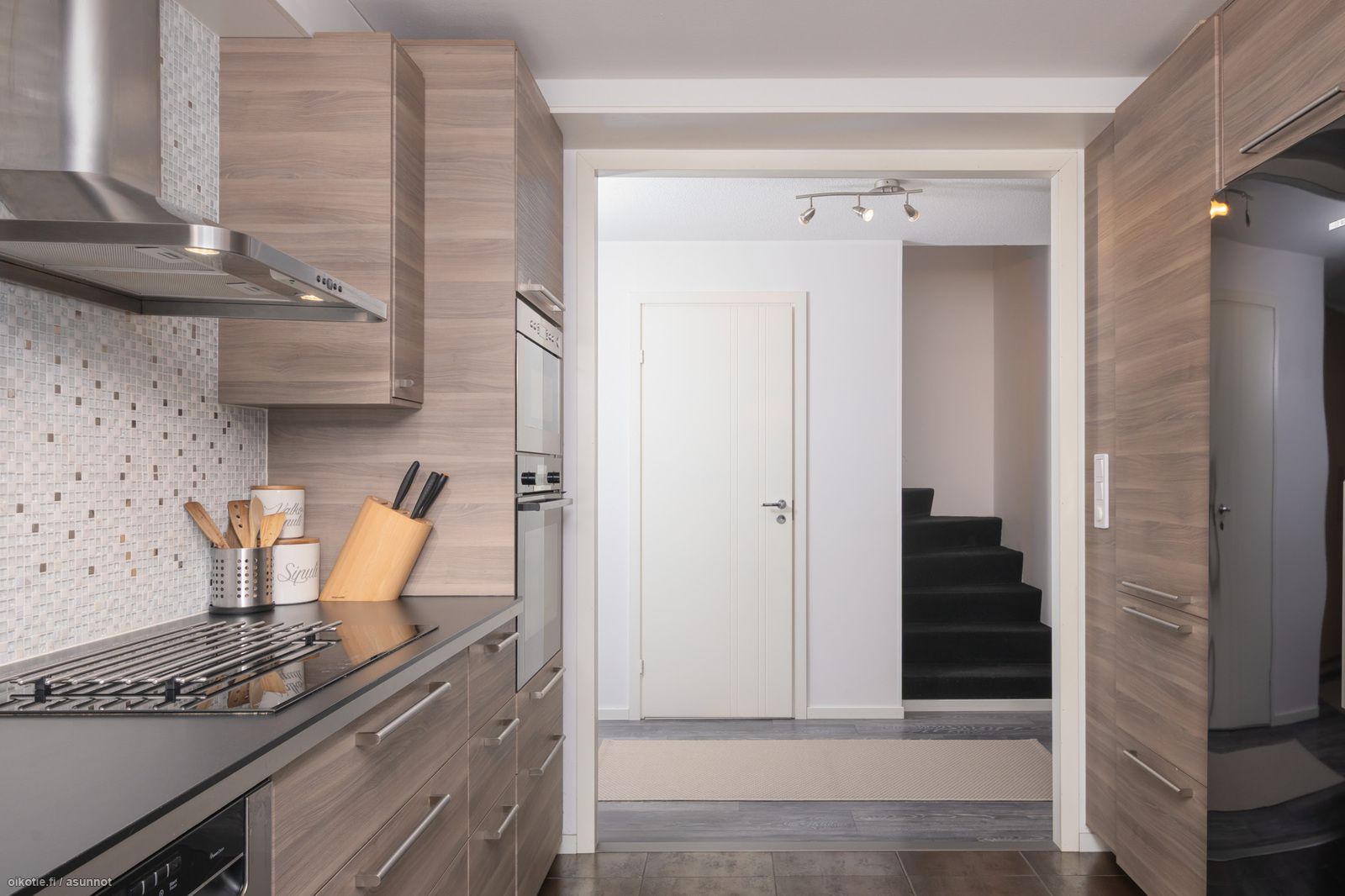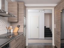 - remontoitu 2014-15, vaakaviilukaapistot, tummat laminaattitasot, jää- ja pakastinkaapit (2024), erillisinduktioliesi, integroitu pyrolyysikiertoilmauuni (2021), integroitu mikroaaltouuni, liesituuletin/-kupu (ohjaa myös huoneiston koneellisen ilmanvaihdon), astianpesukone, ikkuna, lattialämmitys