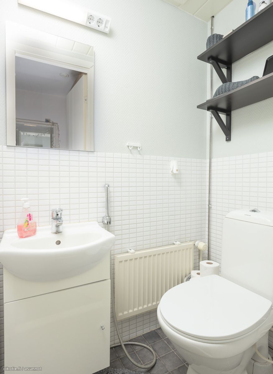 - Pesutilojen kuvaus: remontoitu v. 2014-15, sadesuihku, peili, allaskaappi, wc-istuin, käsisuihku, pyyhepatteri, . Erillisen WC:n kuvaus: remontoitu 2012, peili, allaskaappi, wc-istuin, käsisuihku.