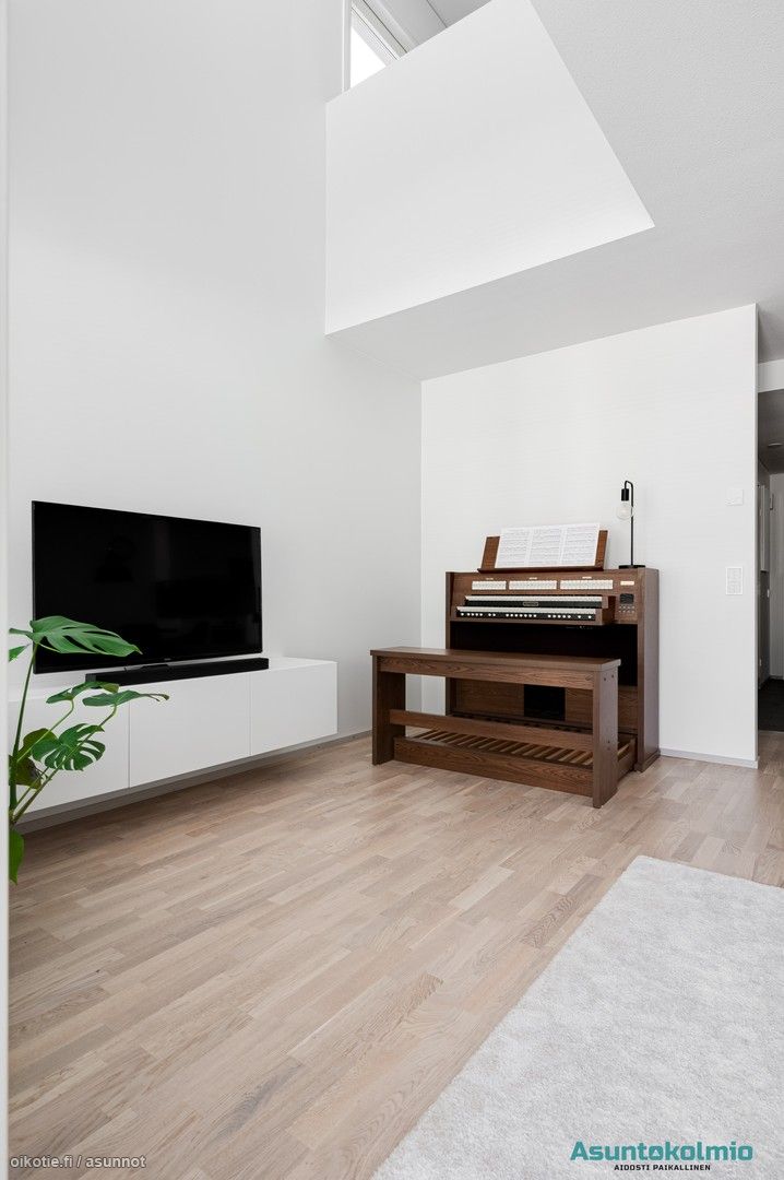 Tervetuloa Käyrätorventielle! Tämä reilun kokoinen ja poikkeuksellinen kahden makuuhuoneen koti täyttää vaativimmatkin asumisen tarpeet. Molemmat makuuhuoneet sekä pesutilat on sijoitettu käytännöllisesti yläkertaan, joten alakertaan jää reilusti tilaa. Alakerta on helppo kalustaa ja ylös saakka auki oleva sisäkatto tuo mukavasti avaruutta ja edustaa talotyypille tavanomaisesta poikkeavaa arkkitehtuuria.