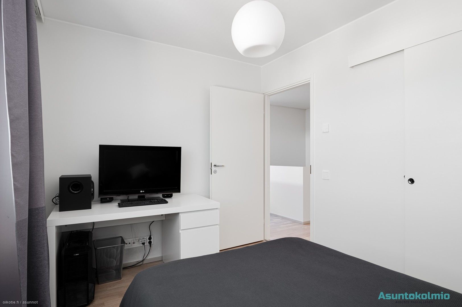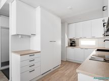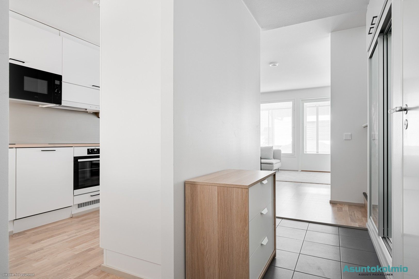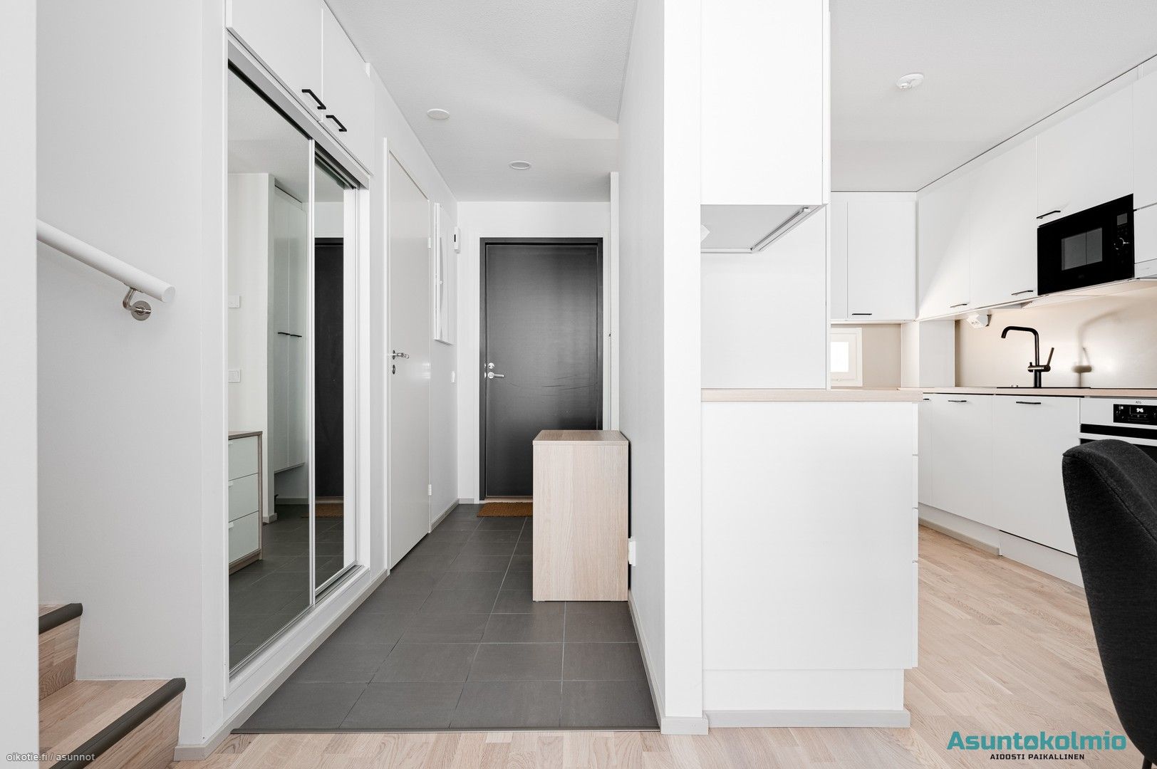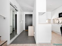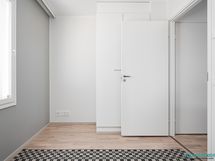 - Eteisessä laattalattia ja liukuovikaapistot