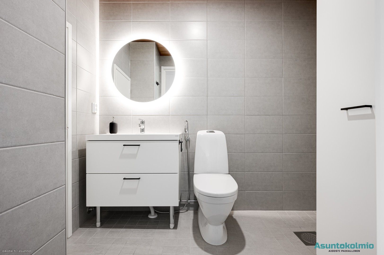 - Pesutilojen kuvaus: Varustus: wc-istuin, pesuallas, peili, bideesuihku, pyykinpesukoneliitäntä, kiinteät kalusteet. Erillisten WC:n lukumäärä: 1. Erillisen WC:n kuvaus: Alakerran wc: Lattia: laatta Seinät: laatta. Varustus: wc-istuin, pesuallas, valopeili, bideesuihku. (varaus suihkulle). Toinen wc kph yhteydessä.