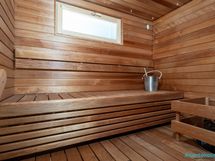 - Lattia: laatta Seinät/Katto/Lauteet: puu. Pilarisähkökiuas.