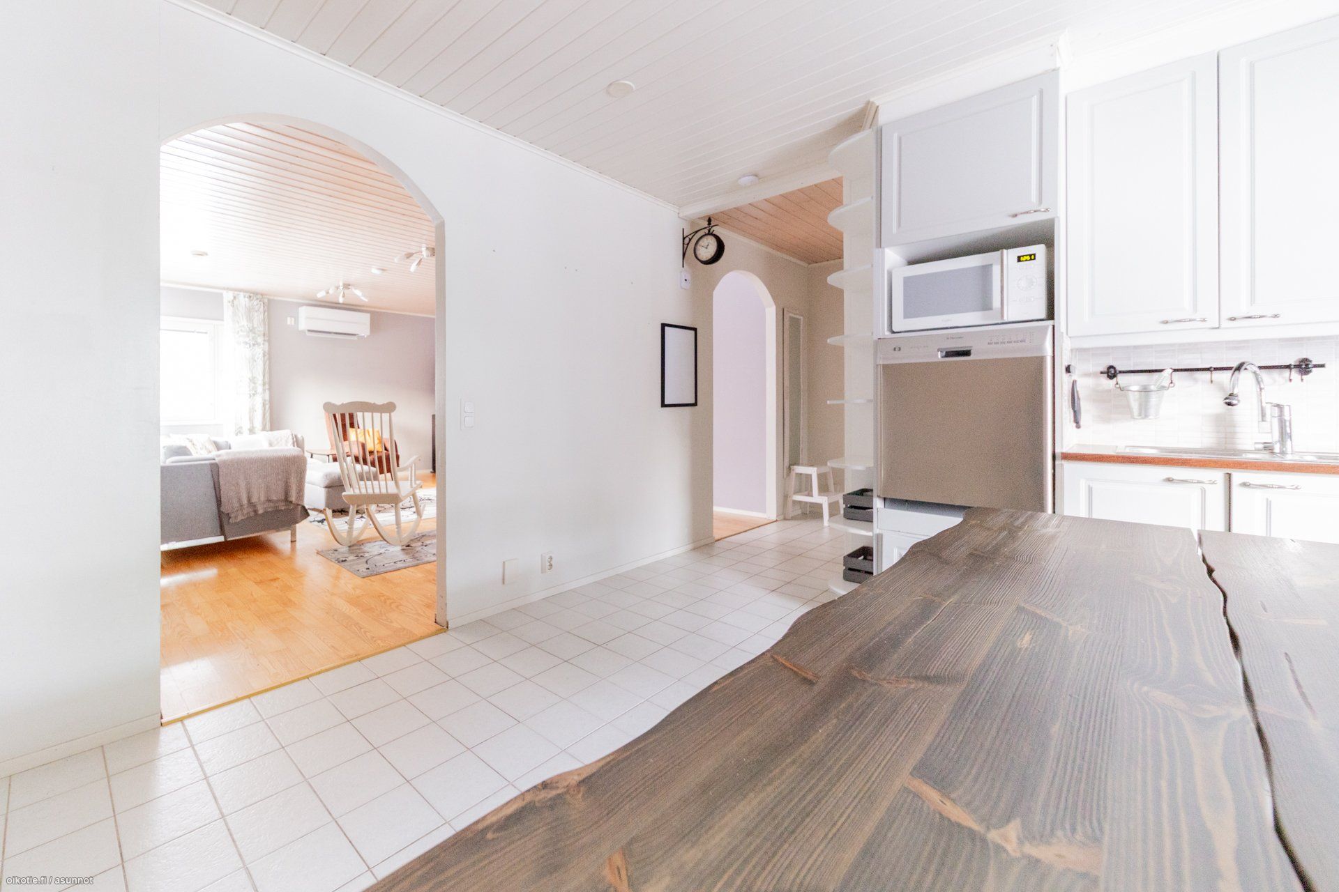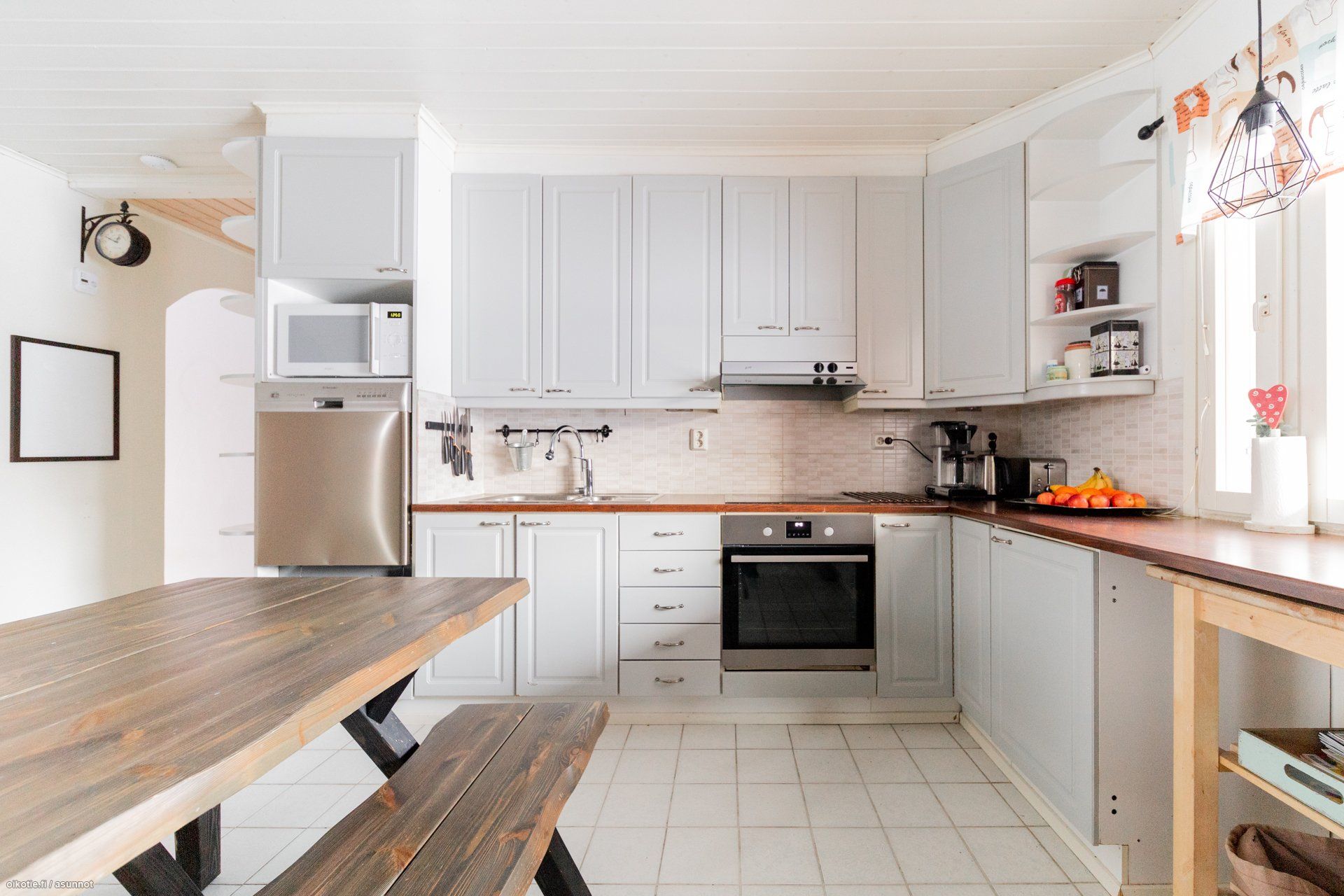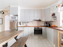 - Keittiön varusteet: Jääkaappi (2016), erillinen pakastin (2016), erillisuuni (2025) ja astianpesukone (Selkäystävällisellä käyttökorkeudella). Työtason materiaali: Laminaatti. Vaaleat kalusteet, runsaasti työtasoa ja sopivasti säilytystilaa. Kattava kodinkoneistus. Leivinuuni.