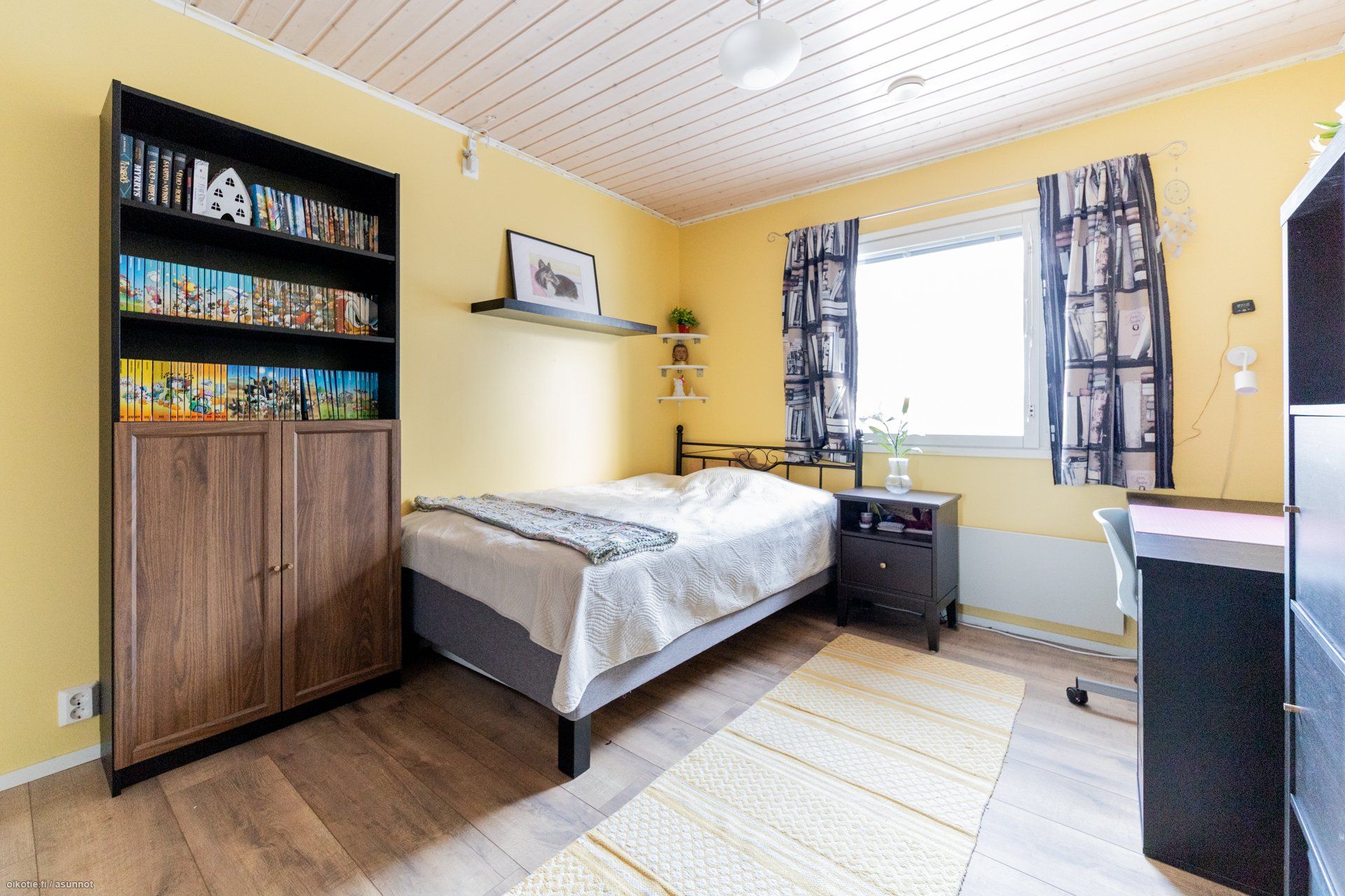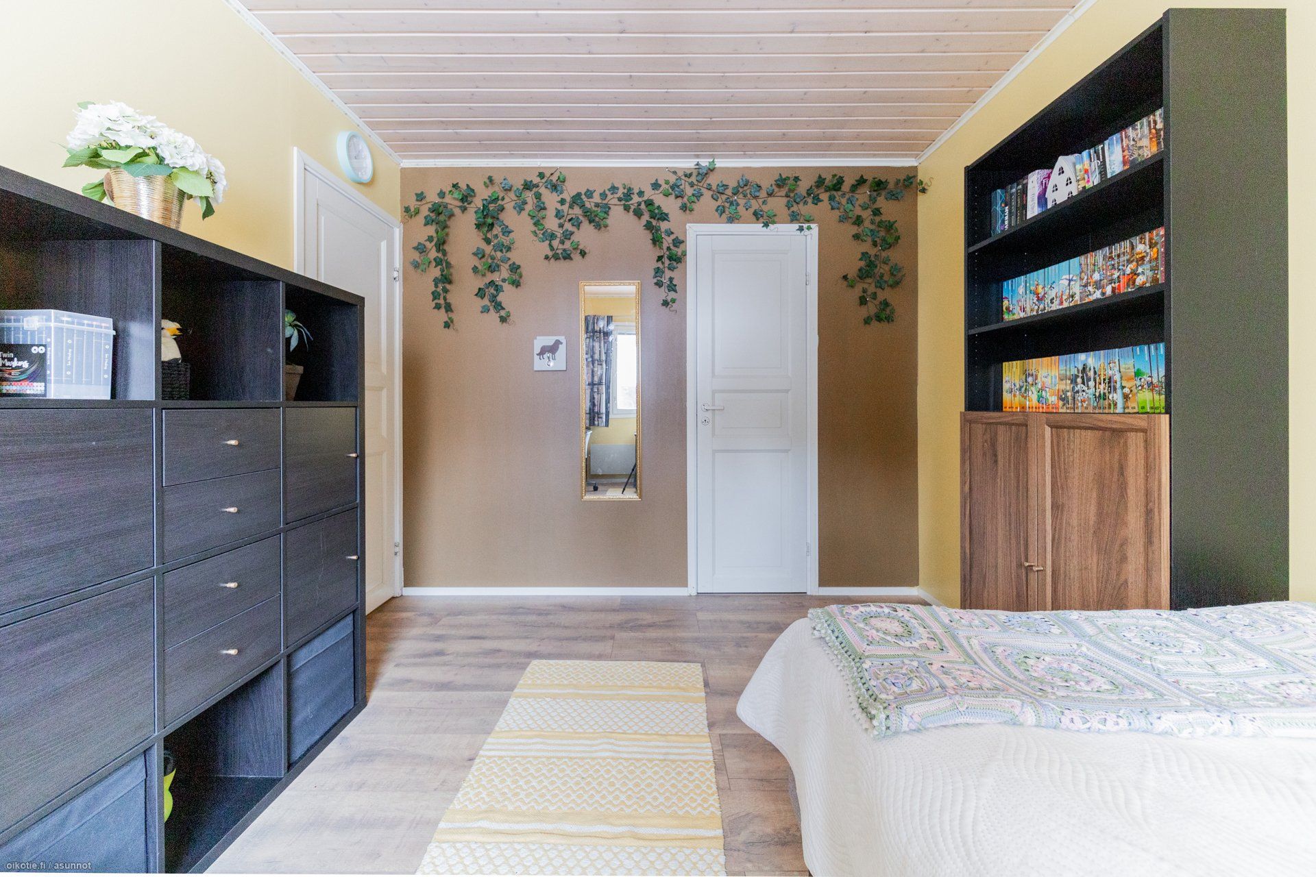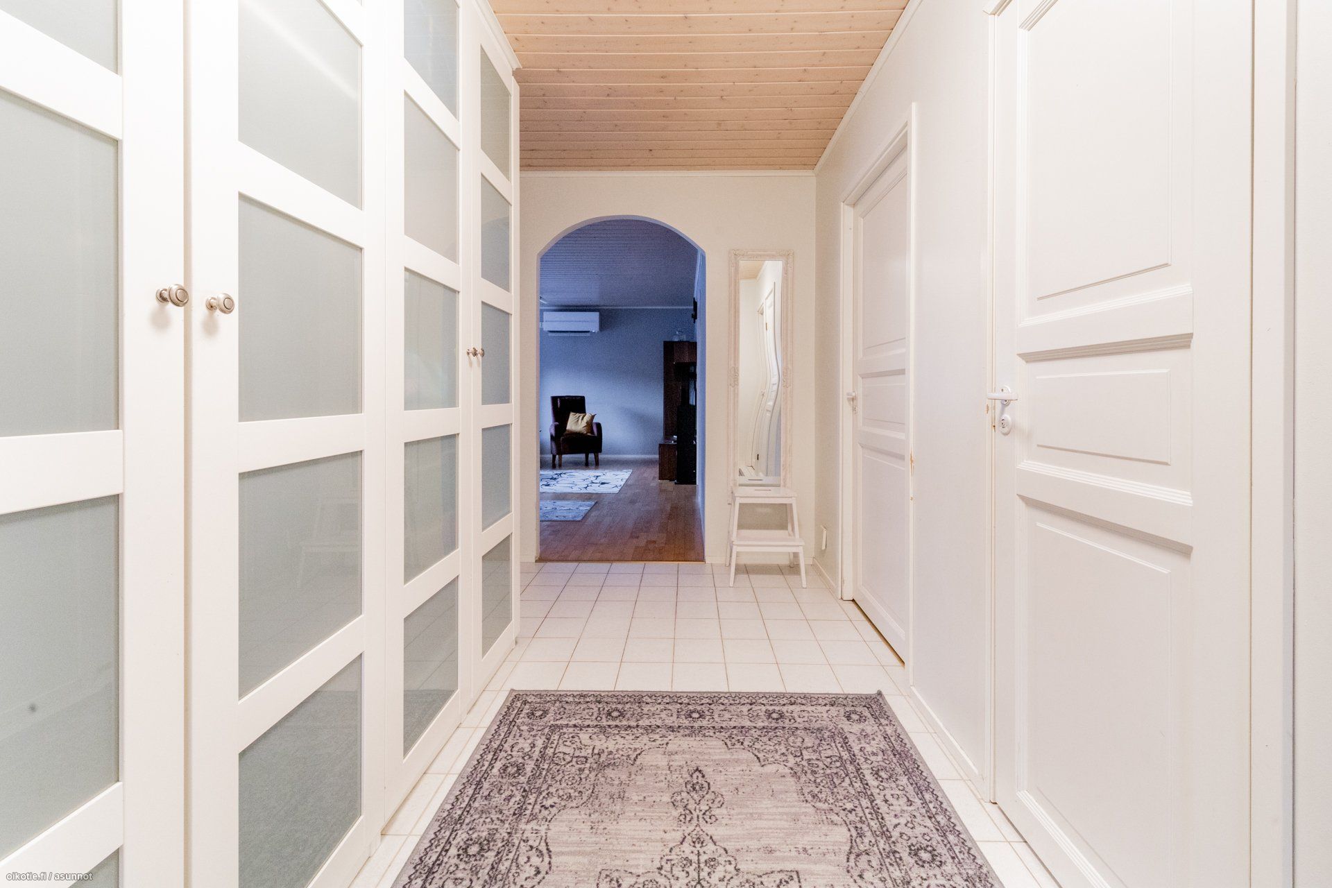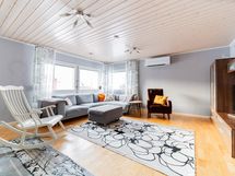 - Mukavan kokoiset huoneet. Keittiön vieressä oleva, entinen takkahuone on otettu makuuhuonekäyttöön. Päämakuuhuoneessa liukuovelliset säilytystilat, yhden makuuhuoneen yhteydessä vaatehuone.