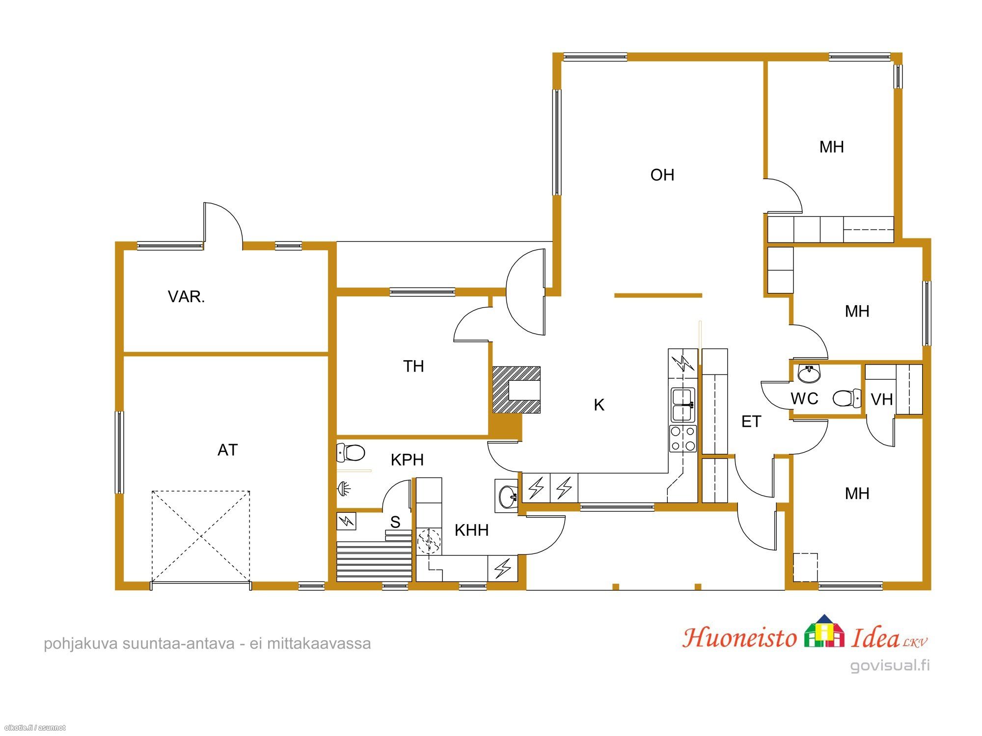 - 5h+k+khh+ph+sa+2wc (iso lämmin var.huone+lämmin autotalli)