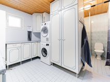- Kaapistot, vaatehuone, iso lämmin varasto ja kylmä ulkovarasto. Lisätietoja säilytystiloista: Lämmin varasto sopii hyvin myös työ-/askarteluhuoneeksi.