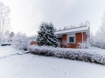 Tontilla on yksitasoinen tiilivuorattu omakotitalo, jonka yhteydessä lämmin, tilava autotalli sekä iso varastohuone, joka sopii vaikka erilliseksi työhuoneeksi.