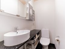 - Pesutilojen varusteet: WC-istuin, suihku, suihkuseinä ja lattialämmitys. Pesutilojen kuvaus: Remontoitu viimeksi 2000-luvun alussa. Vesieristetty ja laatoitettu. Erillisen WC:n kuvaus: Siistit pinnat ja uusitut kalusteet.