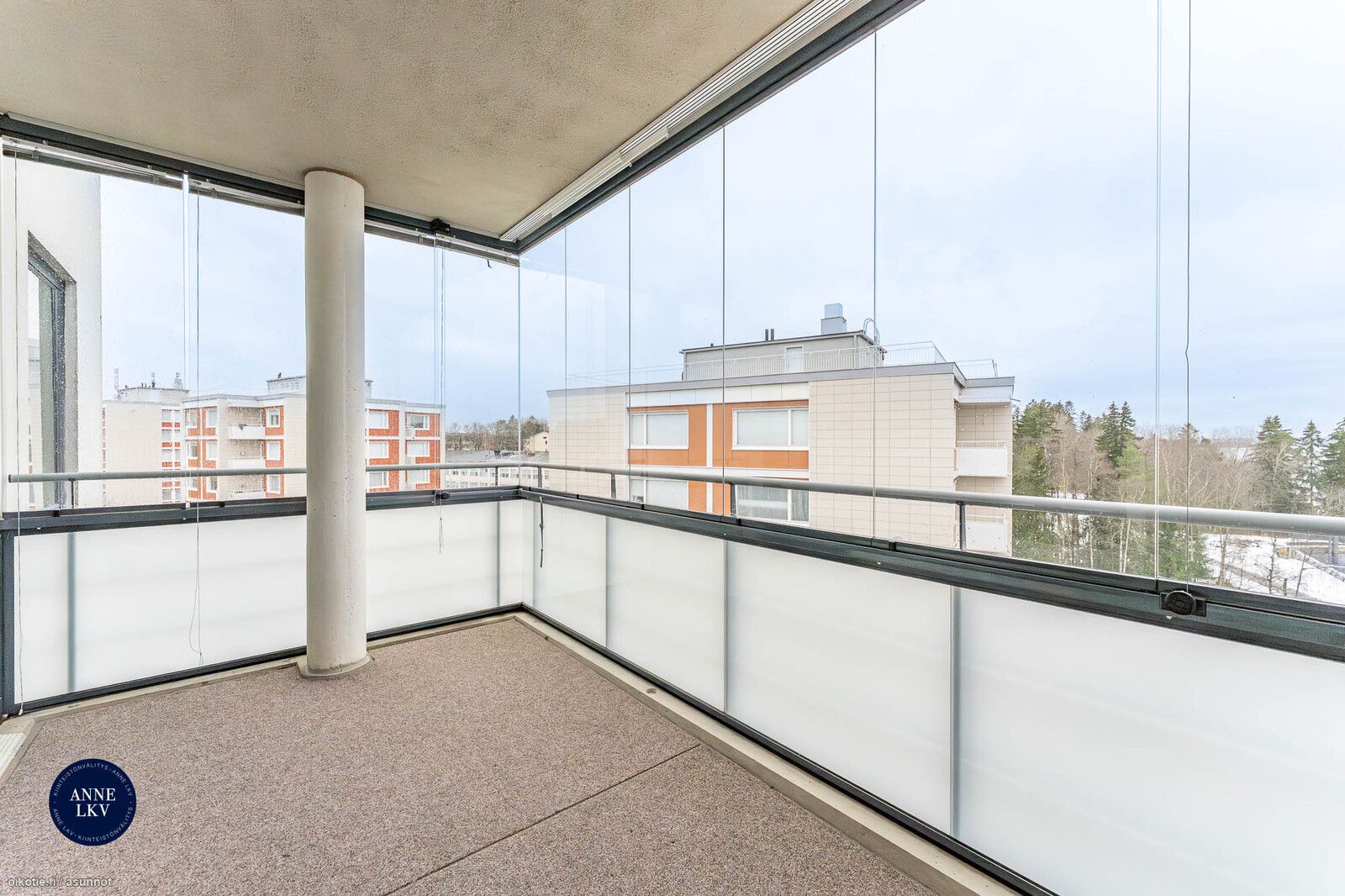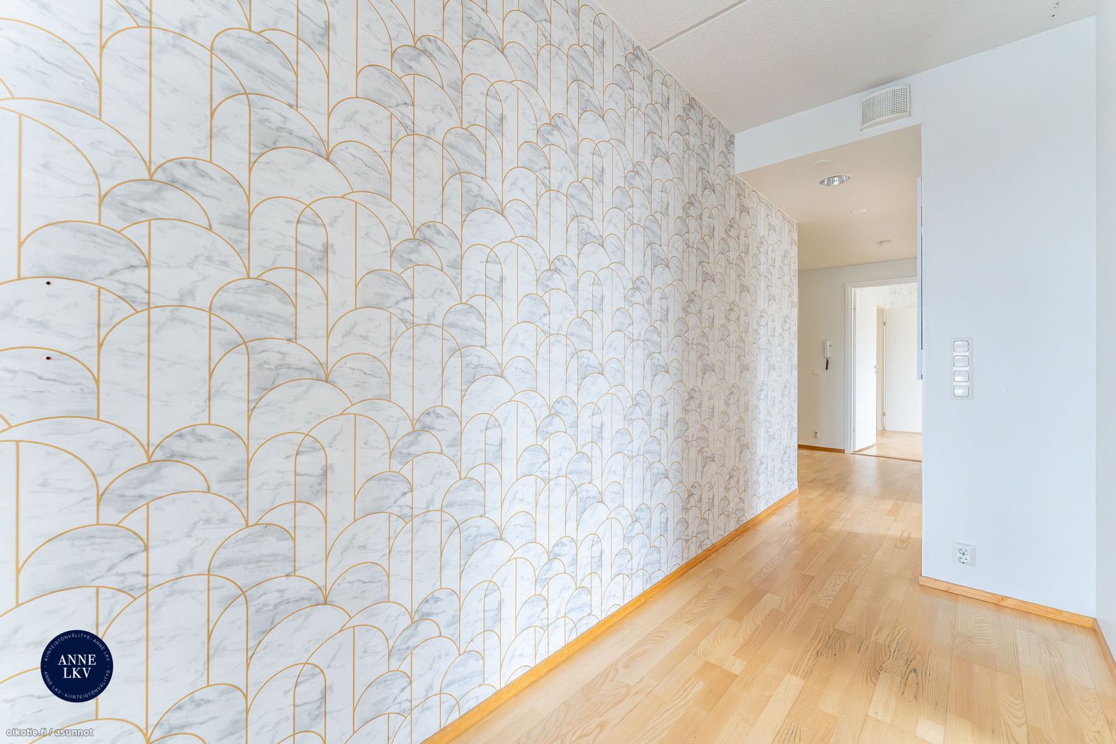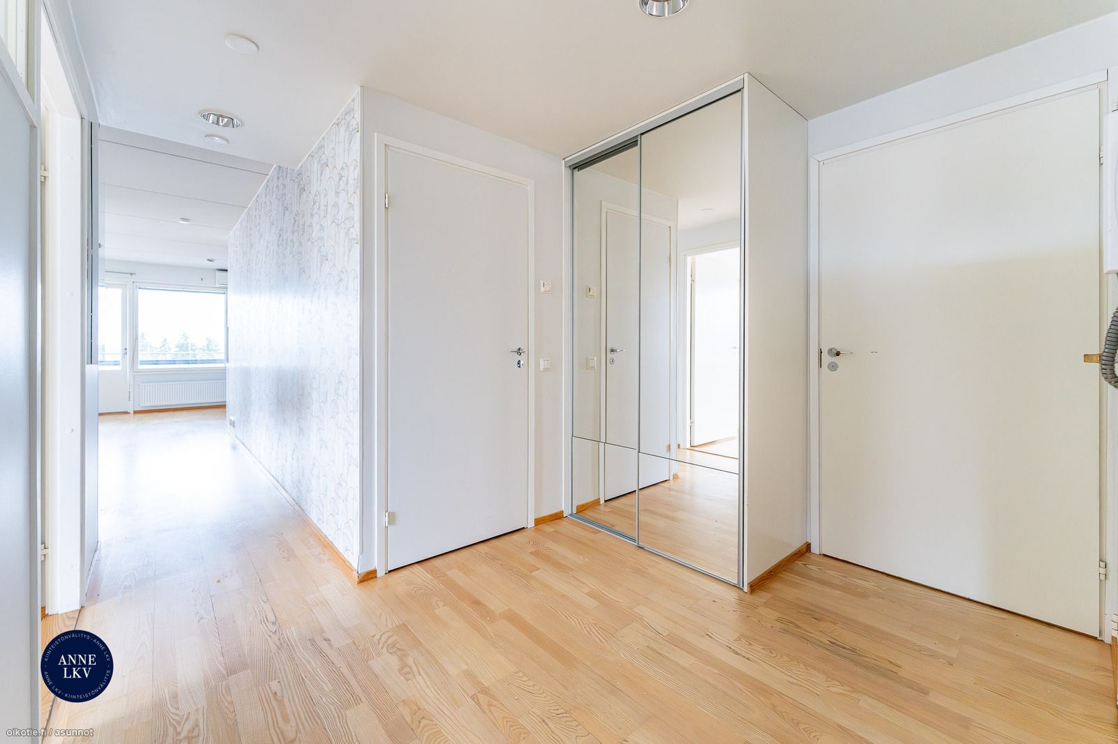 - Vaatehuoneessa vaatetanko ja hyllyt, seinäpinnat maalattu, parkettilattia. Eteisessä peililiukuovikaapisto, seinäpinnat tapetti/maali, parkettilattia. Iso n. 10 m2 lasitettu länsiparveke. Etelän puoleisissa laseissa sälekaihtimet, terassimatto.