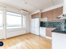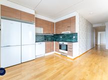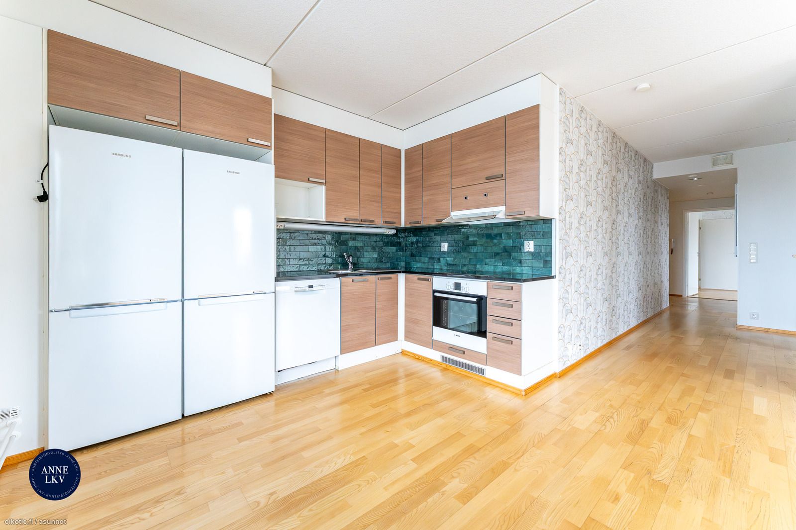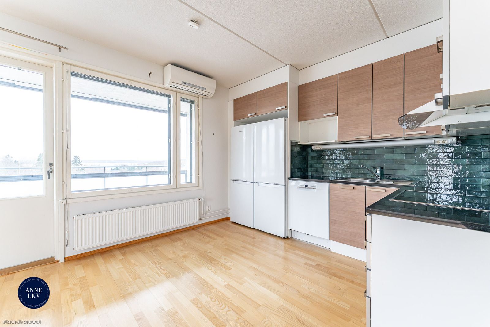 - Keittiökaapit (Topi-Keittiöt), kivitaso, induktiotaso, erillisuuni, liesikupu, astianpesukone (2021), teräsallas ja hana, 2 x jääkaappi/pakastinkaappi (2021), välitila laatoitettu, parkettilattia. Ilmalämpöpumppu (huollettu 2025). Keittiön ikkunan edessä hyvä tila ruokaryhmälle.