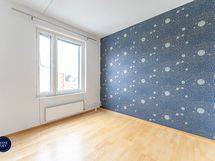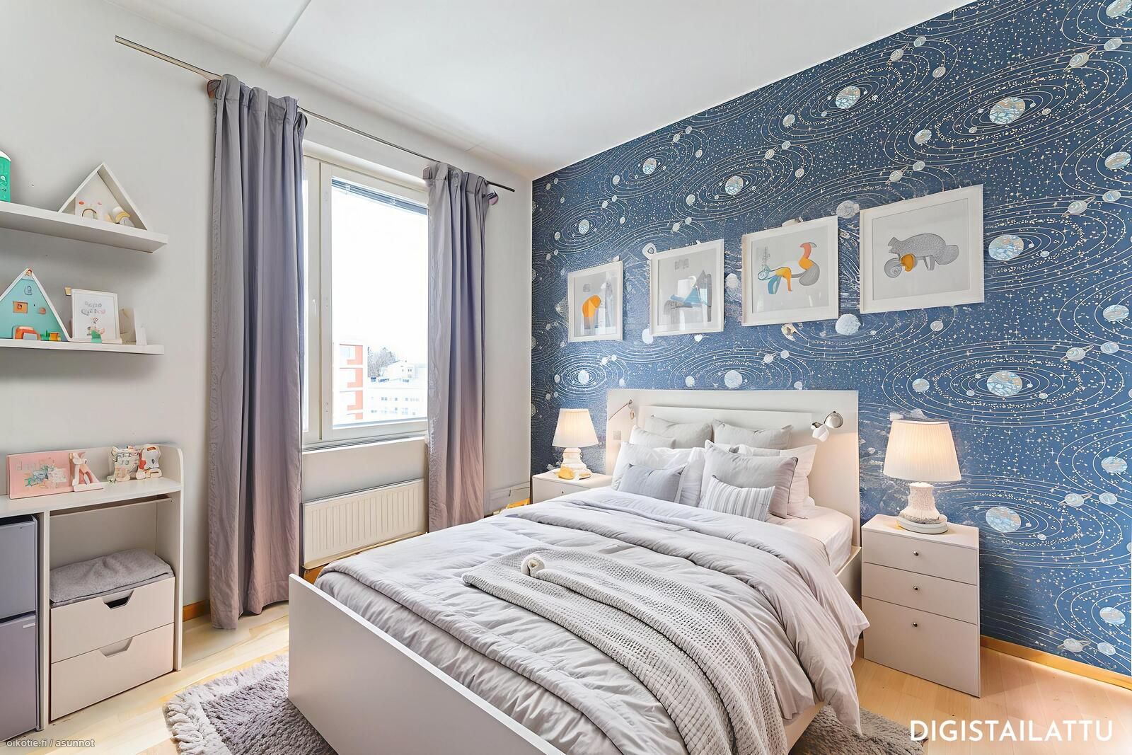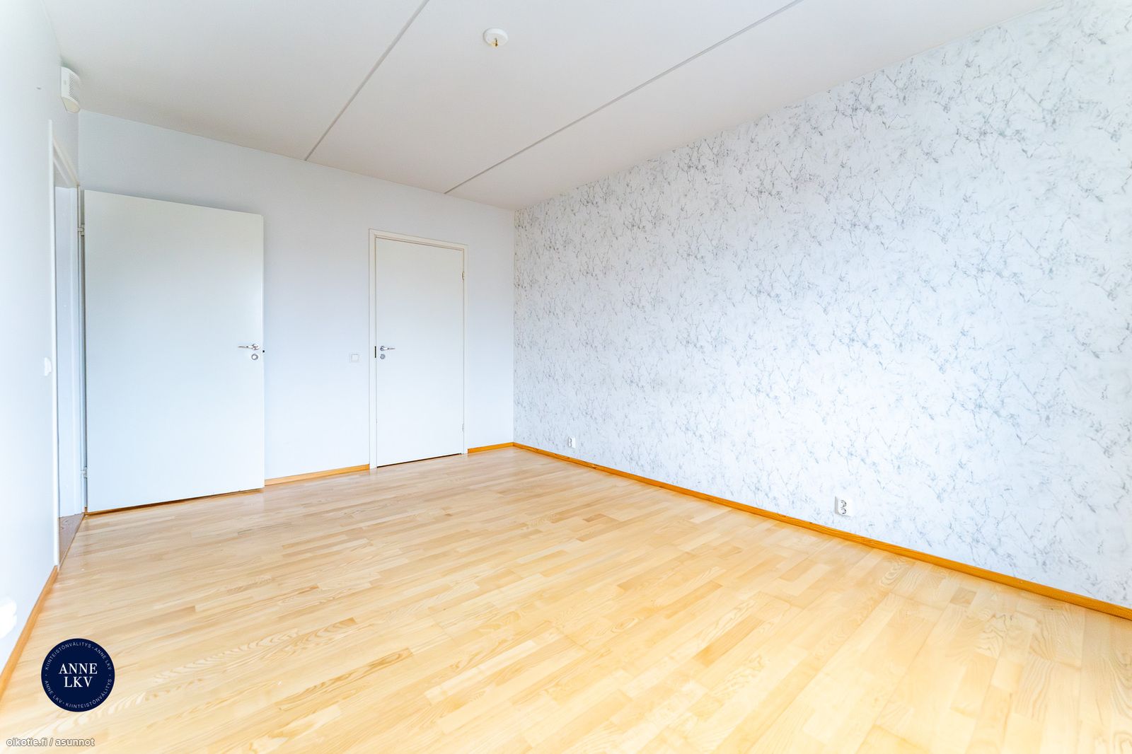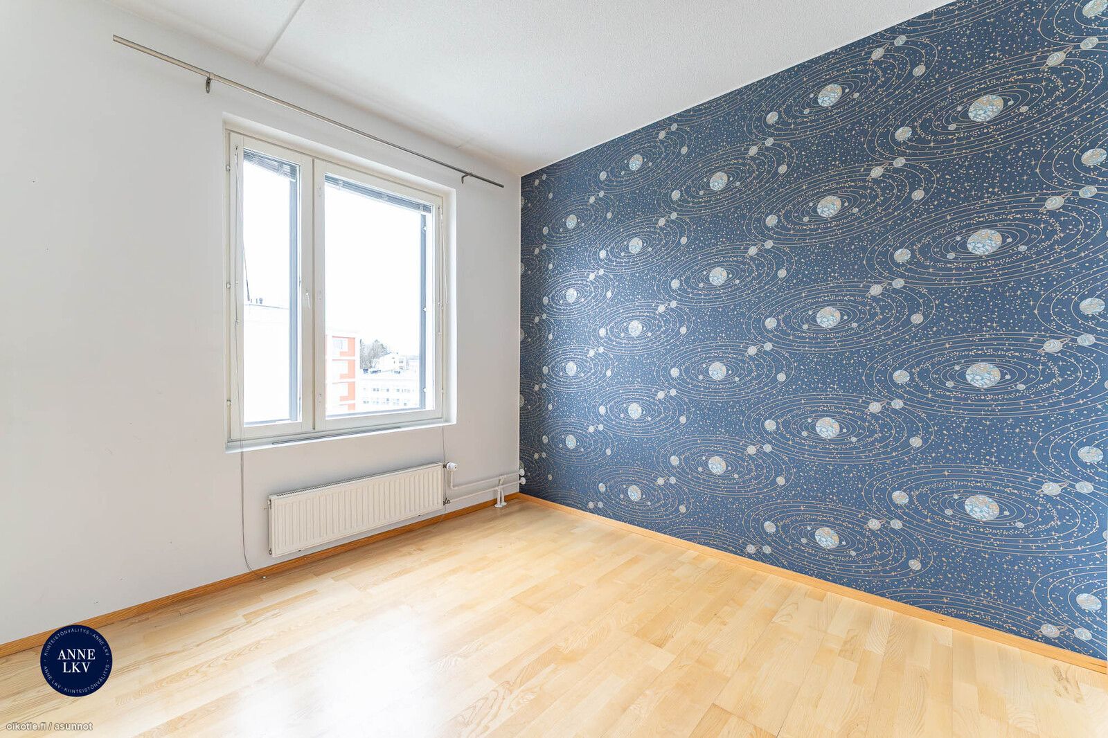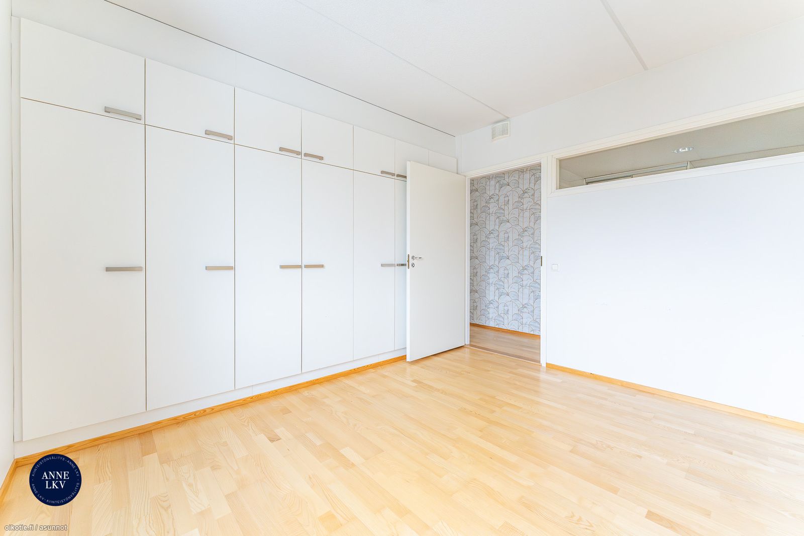 - Kolme makuuhuonetta, joiden ikkunanäkymät avautuvat etelän suuntaan. Isosta makuuhuoneesta käynti vaatehuoneeseen. Keskimmäisessä makuuhuoneessa seinän mitalta korkeat kaapit sekä huoneen ja eteistilan väliseinässä pitkä vaakasuuntainen yläikkuna. Makuuhuoneissa seinäpinnat maali/tapetti ja parkettilattiat.