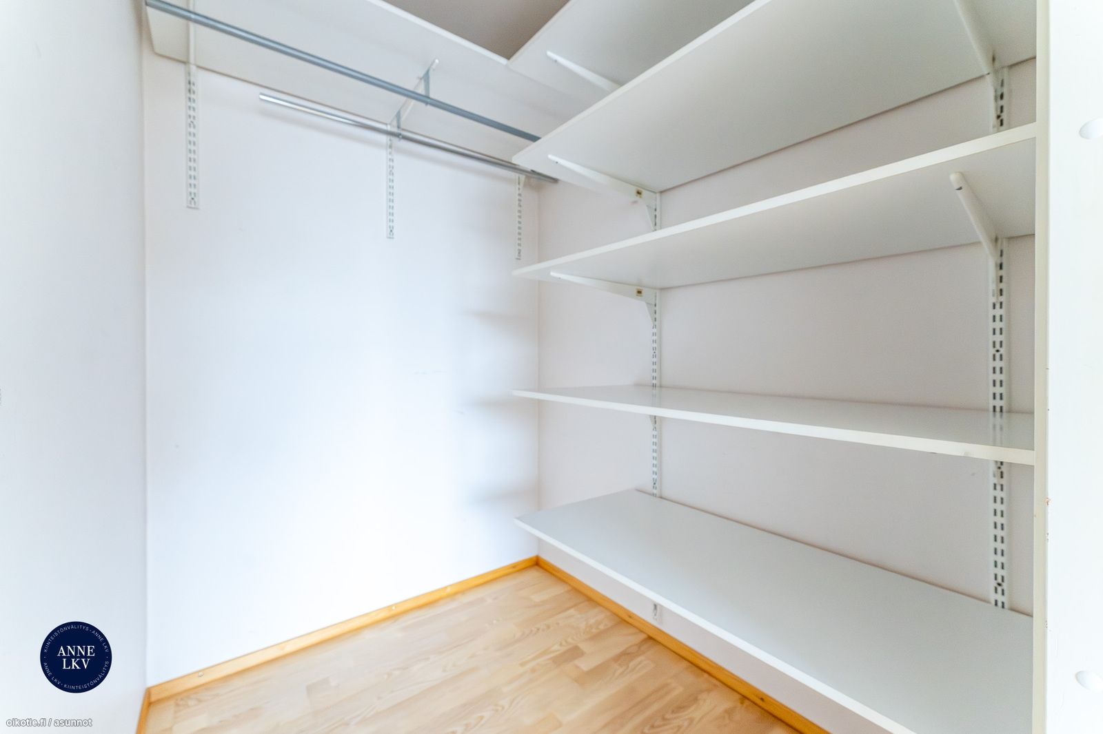- Kuvaus: Kiinteät kaapit, peililiukuovikaapisto, iso vaatehuone, huoneistokohtainen irtainvarasto.
