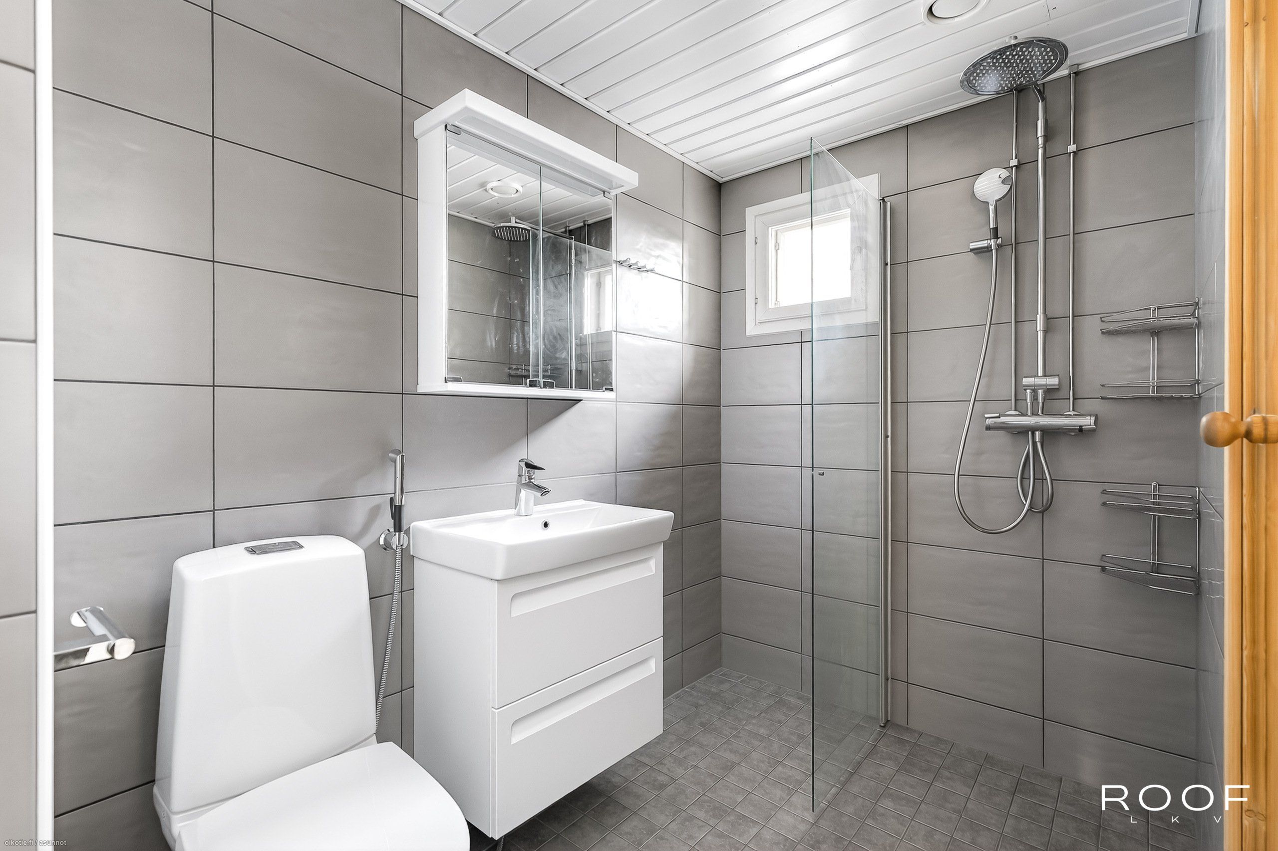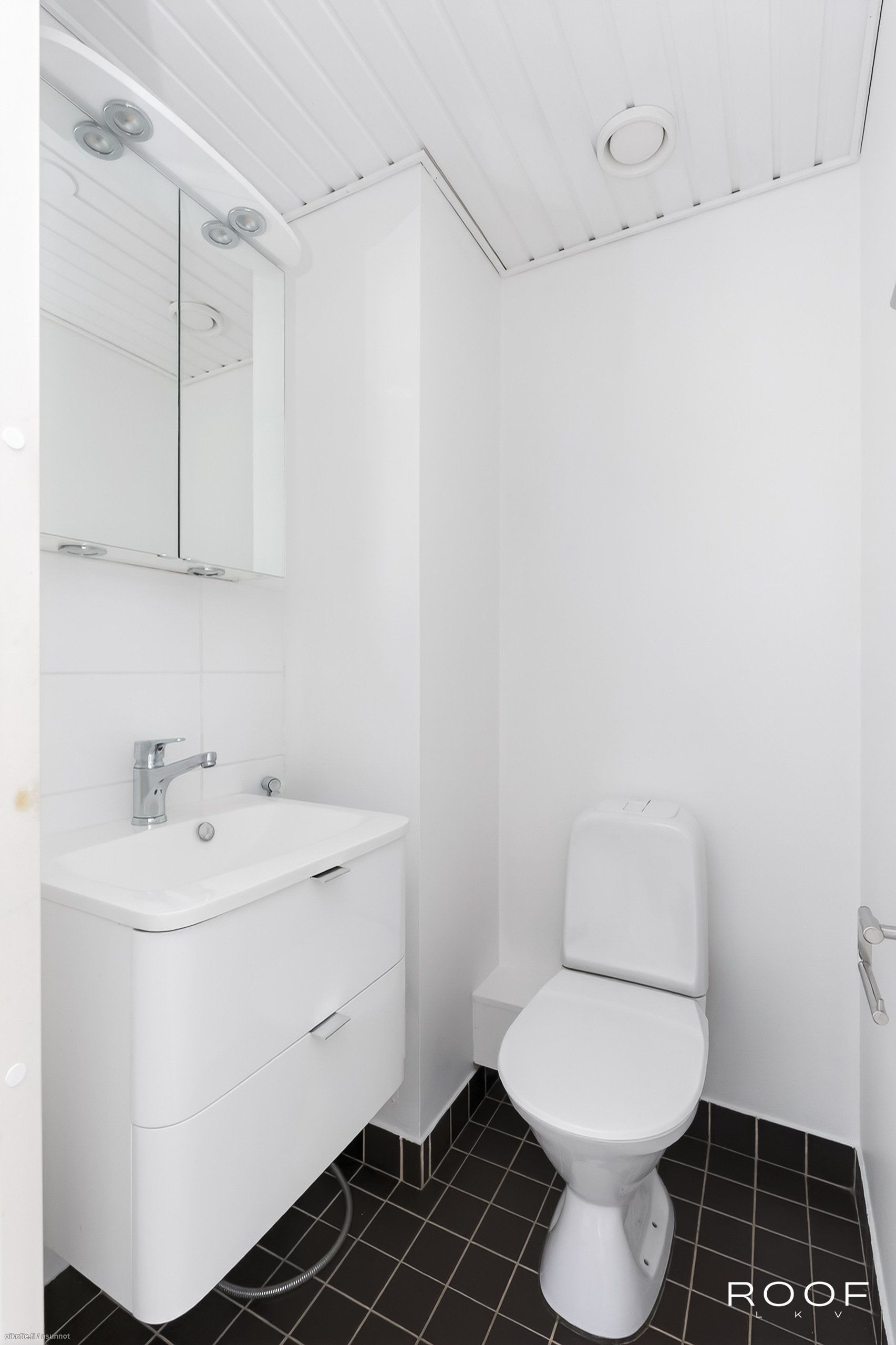- Pesutilojen varusteet: WC-istuin, suihku, suihkuseinä, peilikaappi, pesuallas, allaskaappi, bidee-suihku ja tuuletusikkuna, pyyhepatteri. Pesutilojen kuvaus: Taloyhtiön kaikki märkätilat on peruskorjattu vuosien 2018-2020 aikana. Asunnon kylpyhuone on remontoitu v. 2019. Erillisten WC:n lukumäärä: 1. Erillisen WC:n varusteet: WC-istuin, peilikaappi, pesuallas, allaskaappi ja bidee-suihku. Erillisen WC:n kuvaus: Erillinen wc on remontoitu v. 2011. Lattia tumman ruskeaa laattaa, välitilassa valkoinen kaakeli.