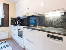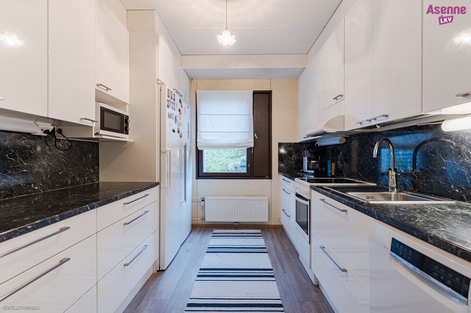 - Keittiö on remontoitu vuonna 2017 (Keittiötukku). Lattia: vinyylilankku, Seinät: maalattu. Varustus: keraaminen liesi, liesituuletin, jääkaappi, pakastin, astianpesukone.