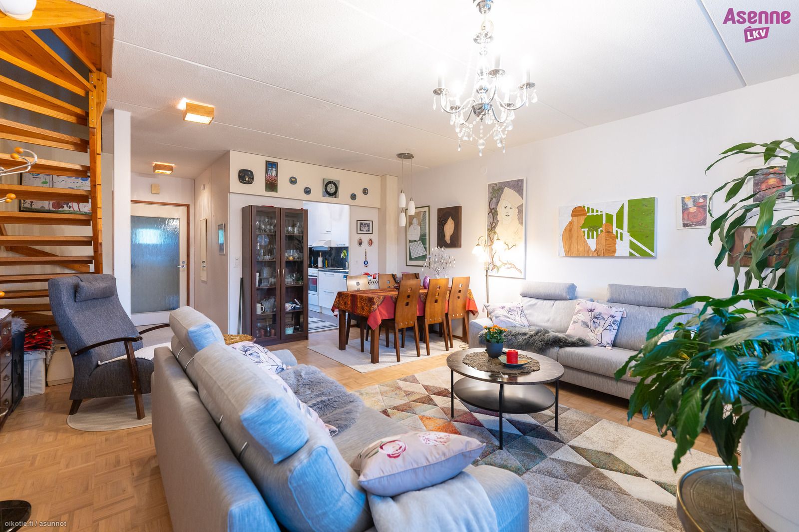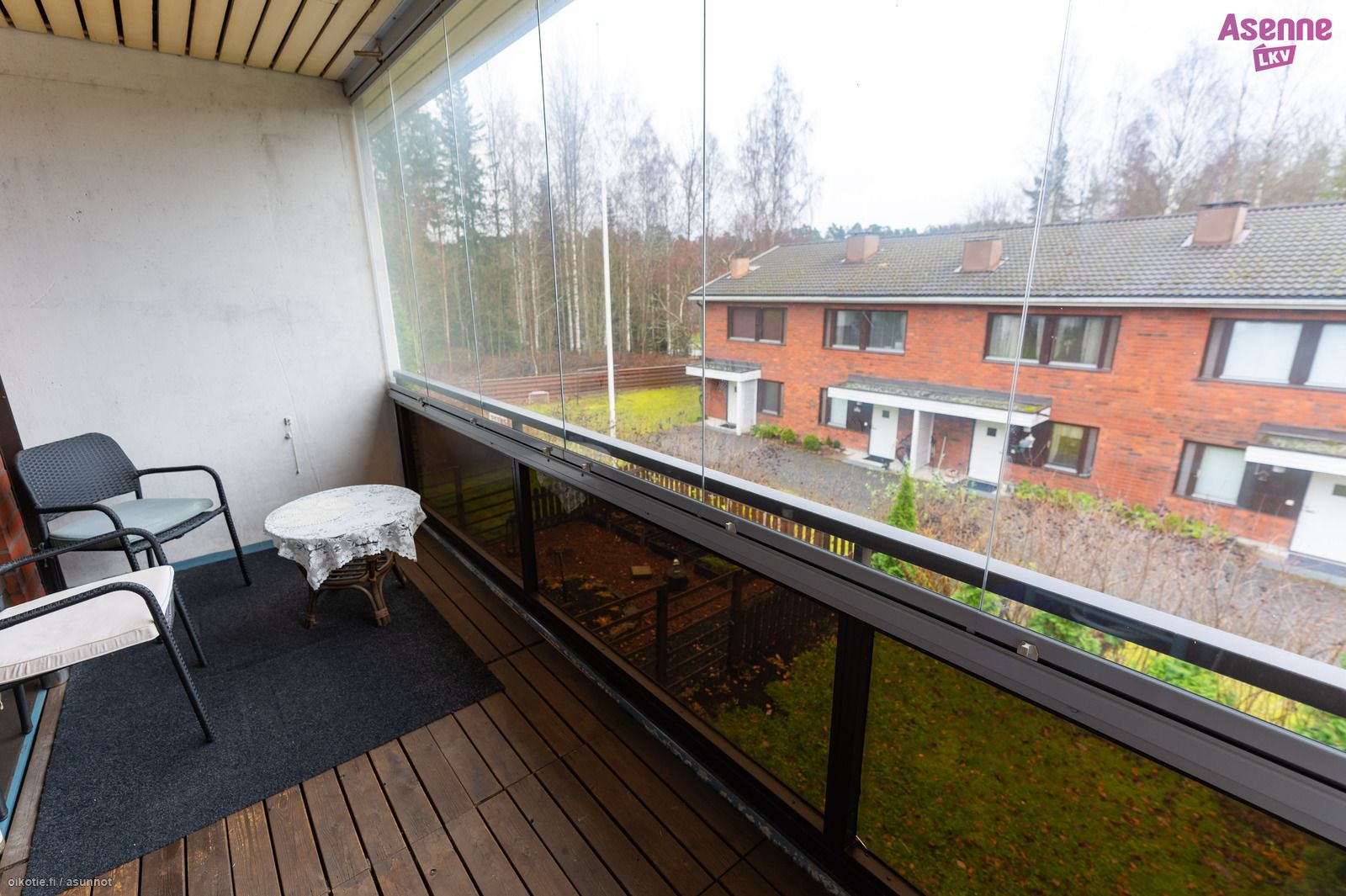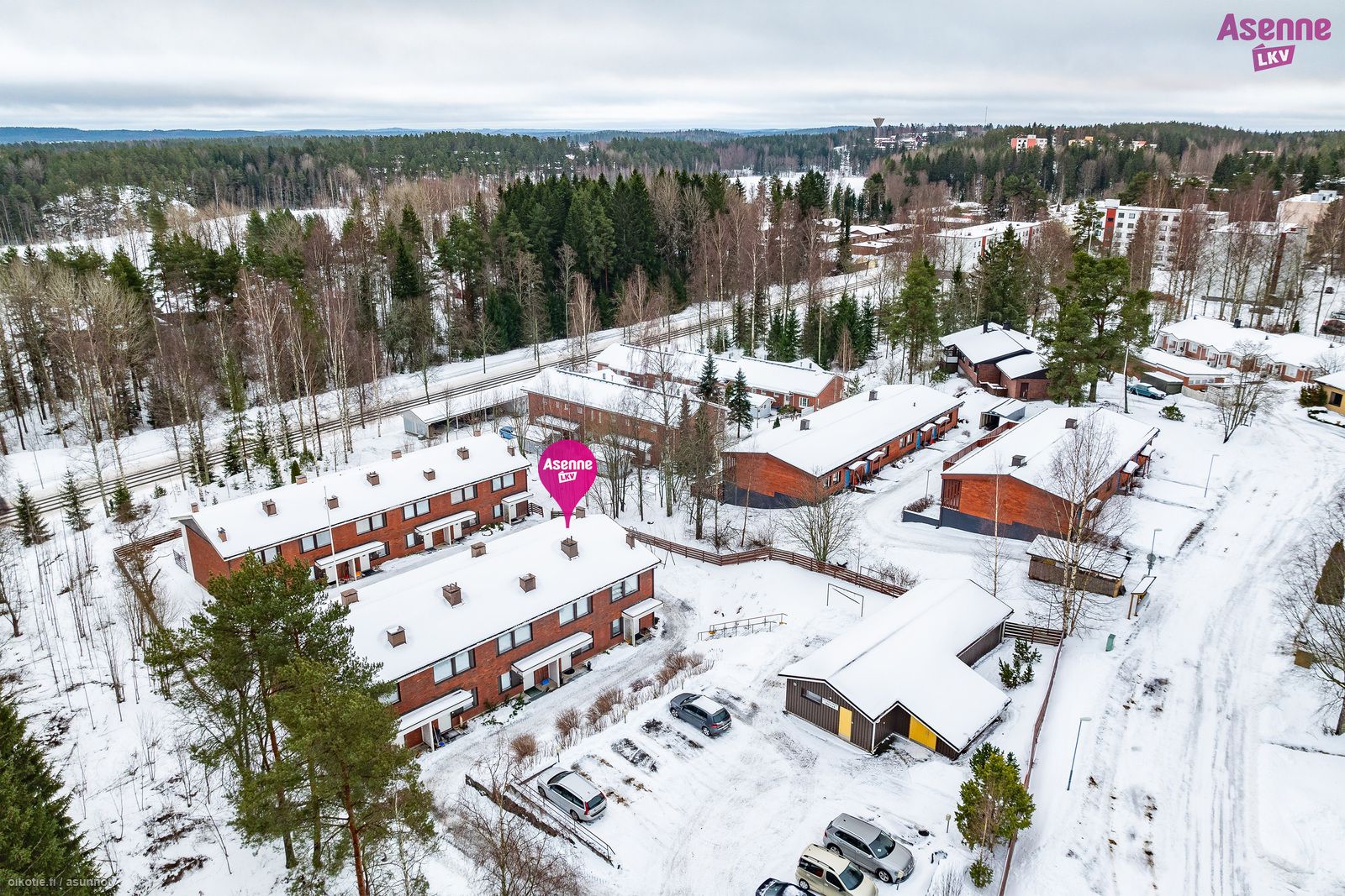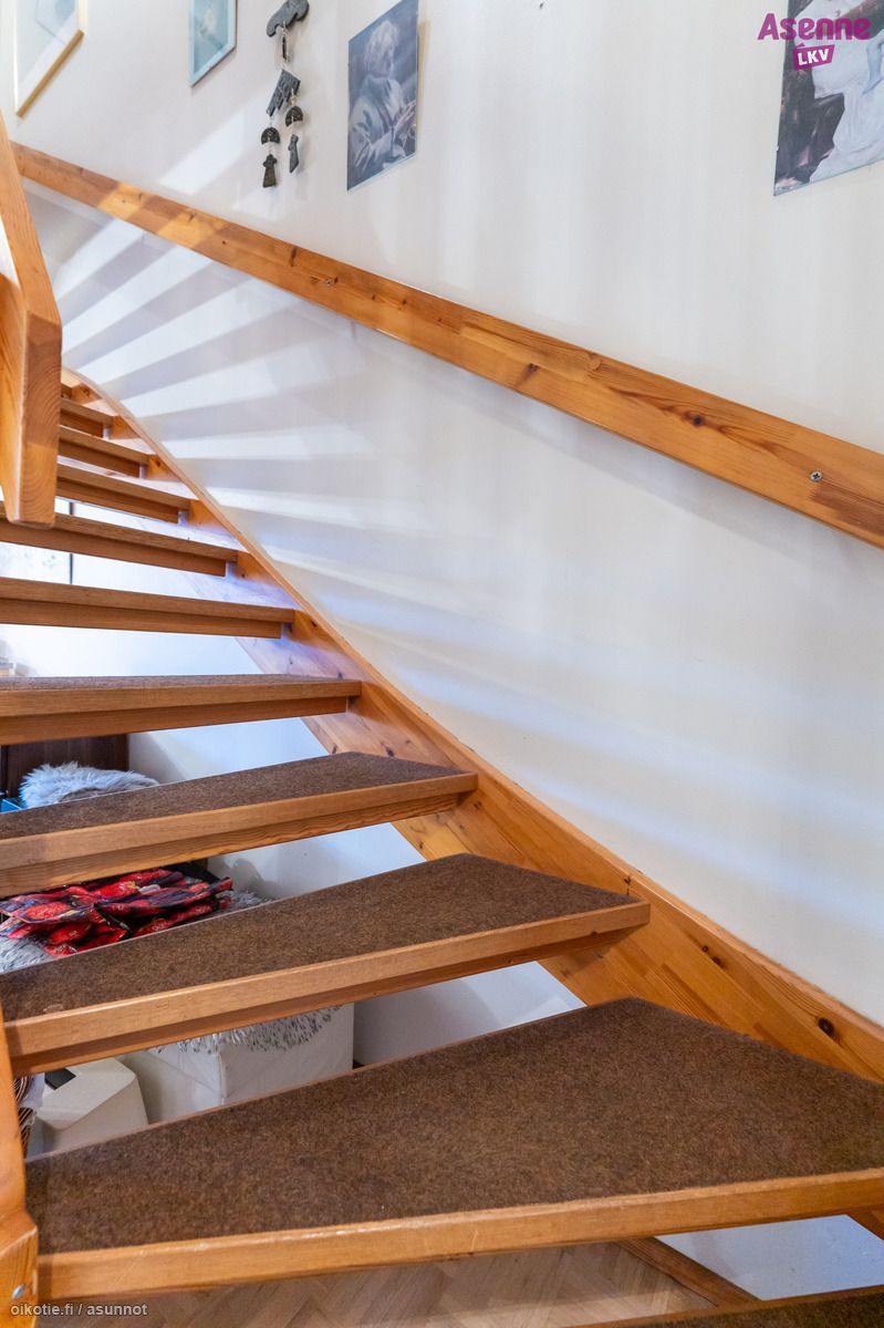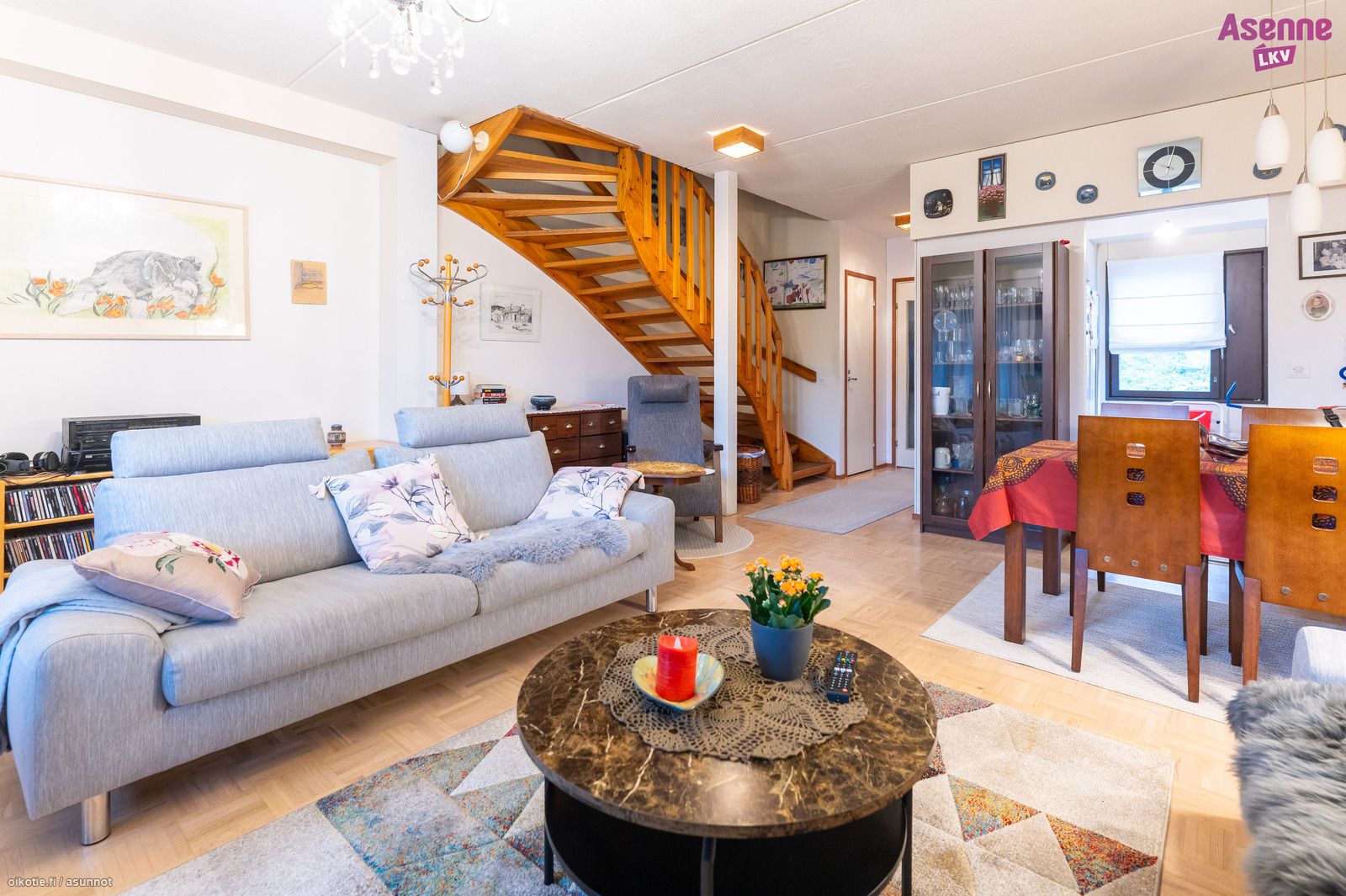 Tämä rivitalokoti on rakennettu kahteen tasoon ja käsittää kaksi makuuhuonetta. Toimiva pohjaratkaisu tekee tästä kodista käytännöllisen ja viihtyisän vaihtoehdon monenlaiseen asumiseen. Alakerrassa on keittiön ja olohuoneen lisäksi erillinen wc. Keittiö on remontoitu laadukkailla materiaaleilla vuonna 2017. Yläkerrassa on kaksi makuuhuonetta, tilava vaatehuone sekä kylpyhuone ja saunatilat. Lisäksi yläkerrassa on reilunkokoinen lasitettu parveke, joka soveltuu mainiosti saunan jälkeiseen rentoutumiseen. Parveke, alakerran terassi ja takapiha suuntautuvat itään päin.
