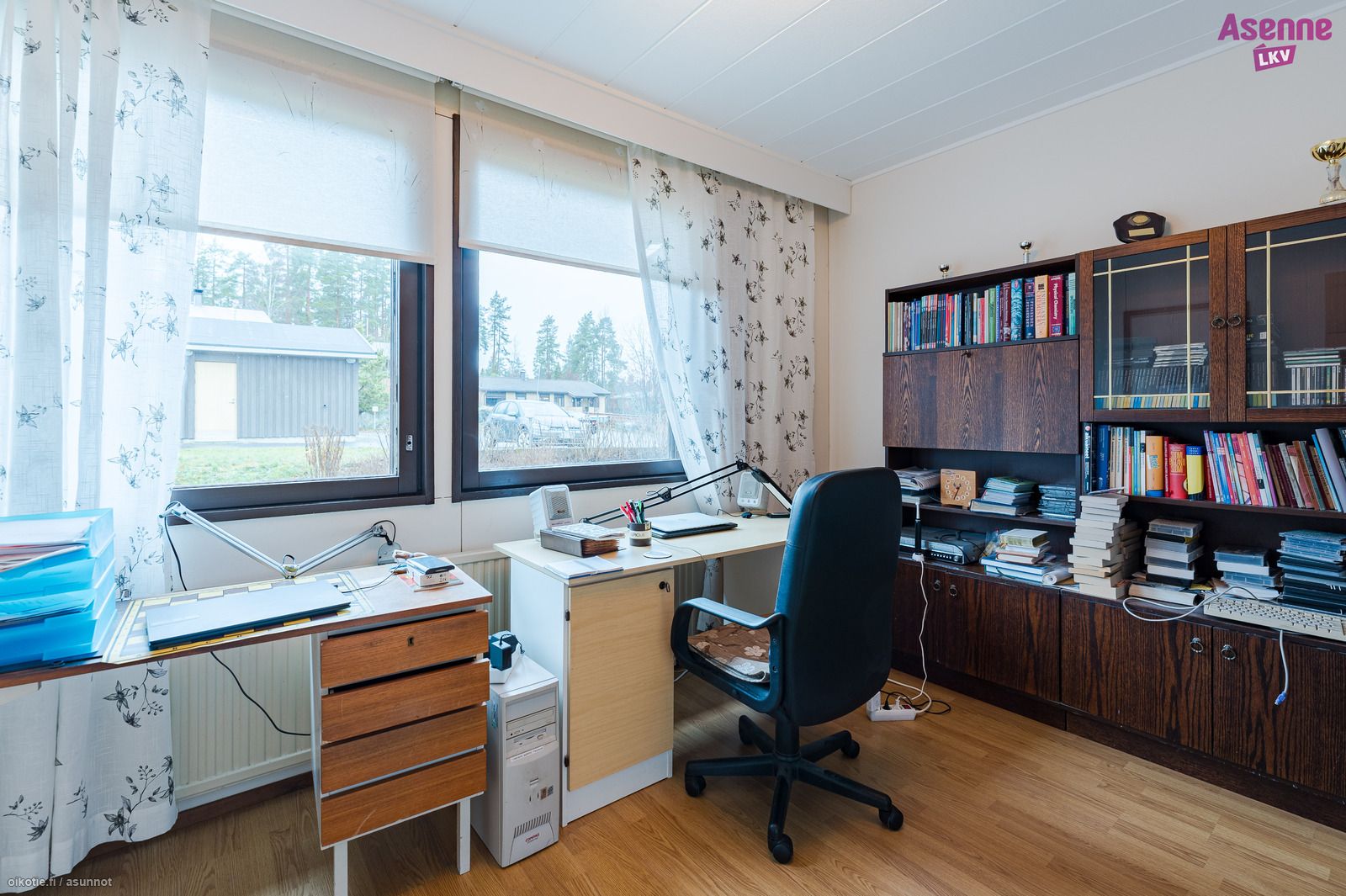 - Tuulikaappi: Muovimattolattia, kiinteät kaapit, patteri. Eteisaula: Parkettilattia. Yläkerran aula: Parkettilattia. Vaatehuone.