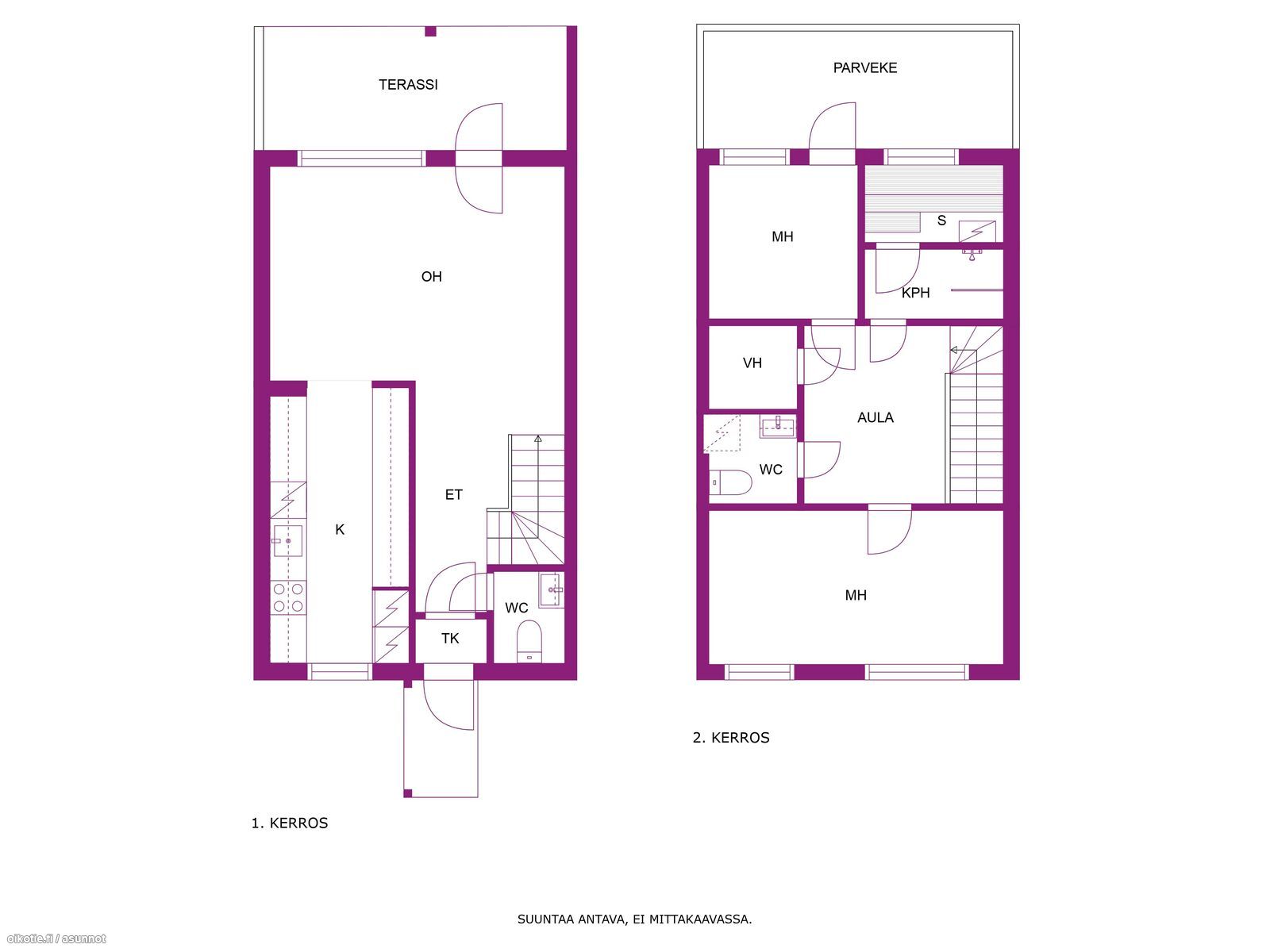 - Mh1: Lattia laminaatti, seinät maalattu, vaatehuone. Mh2: Lattia laminaatti, puolipaneeli/tapetti/maali seinässä, kiinteät kaapistot, käynti lasitetulle parvekkeelle.
