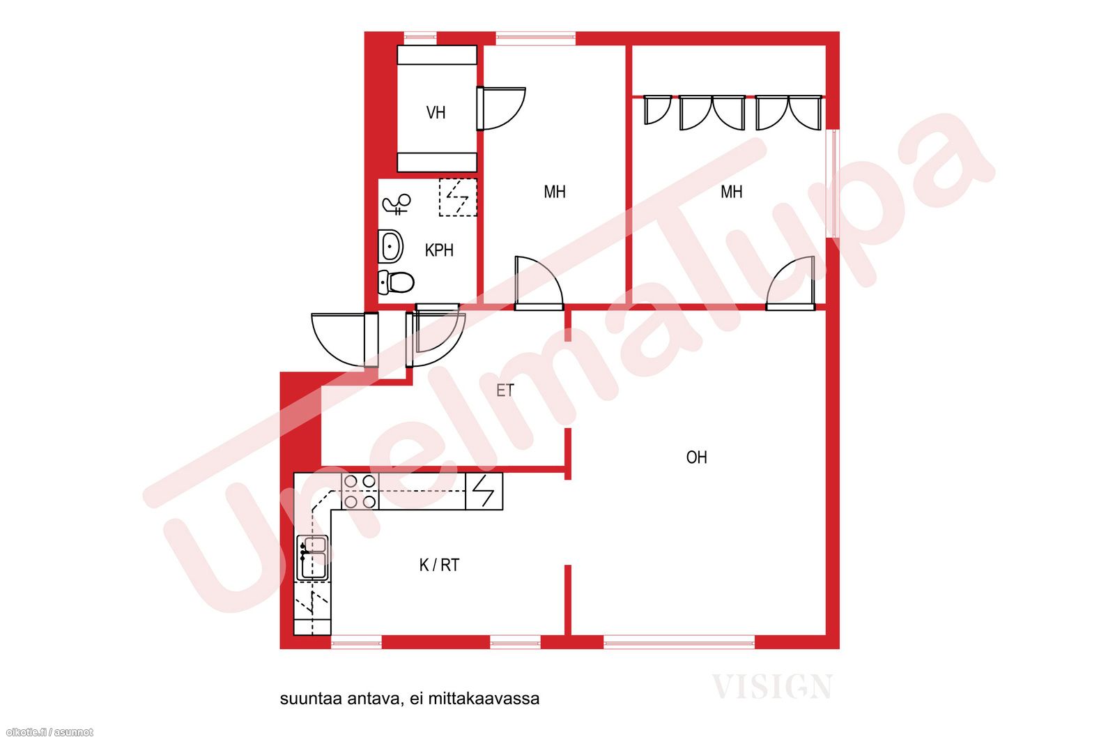 - 3h+k+kph/wc+vh (yhtiöjärjestyksen mukaan 3h+k)
