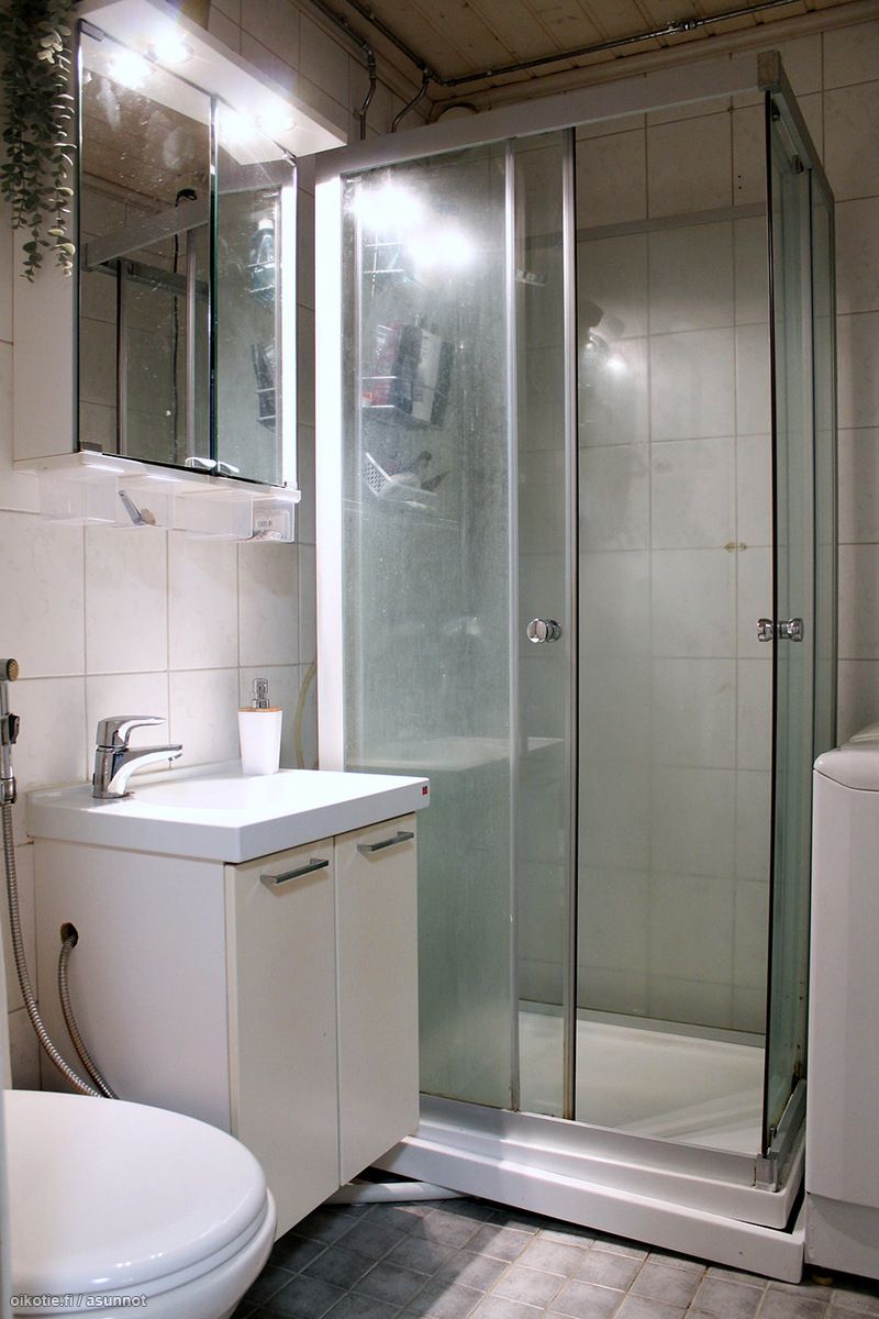 - Pesutilojen kuvaus: remontoitu 2012, suihkukaappi, wc-istuin, käsisuihku, peili- ja allaskaappi, pyykinpesukoneliitäntä.