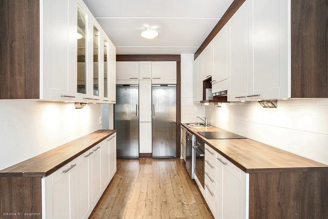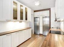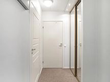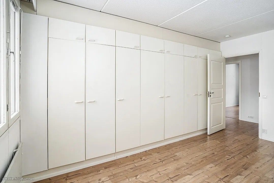 Huoneistoa on keittiön lisäksi päivitetty myös lattian sekä väliovien osalta. Toisen makuuhuoneen kaapistot on vaihdettu ja isommastakaan makkarista ei säilytystila lopu kesken; kaapistoja on koko pitkän seinän verran.