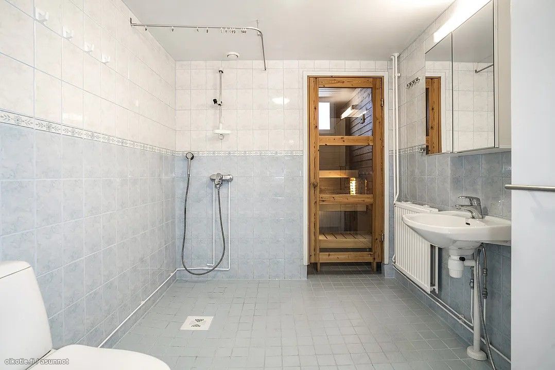Oma ikkunallinen sauna luo paikan rentoutua arjen kiireistä. Isossa kylpyhuoneessa mahdut hyvin hoitamaan pyykkihuoltoa. Myös taloyhtiön pyykkitupa on käytössäsi veloituksetta.