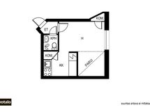 Valoisa ja toimiva yksiö erinomaisella sijainnilla Vallilassa.