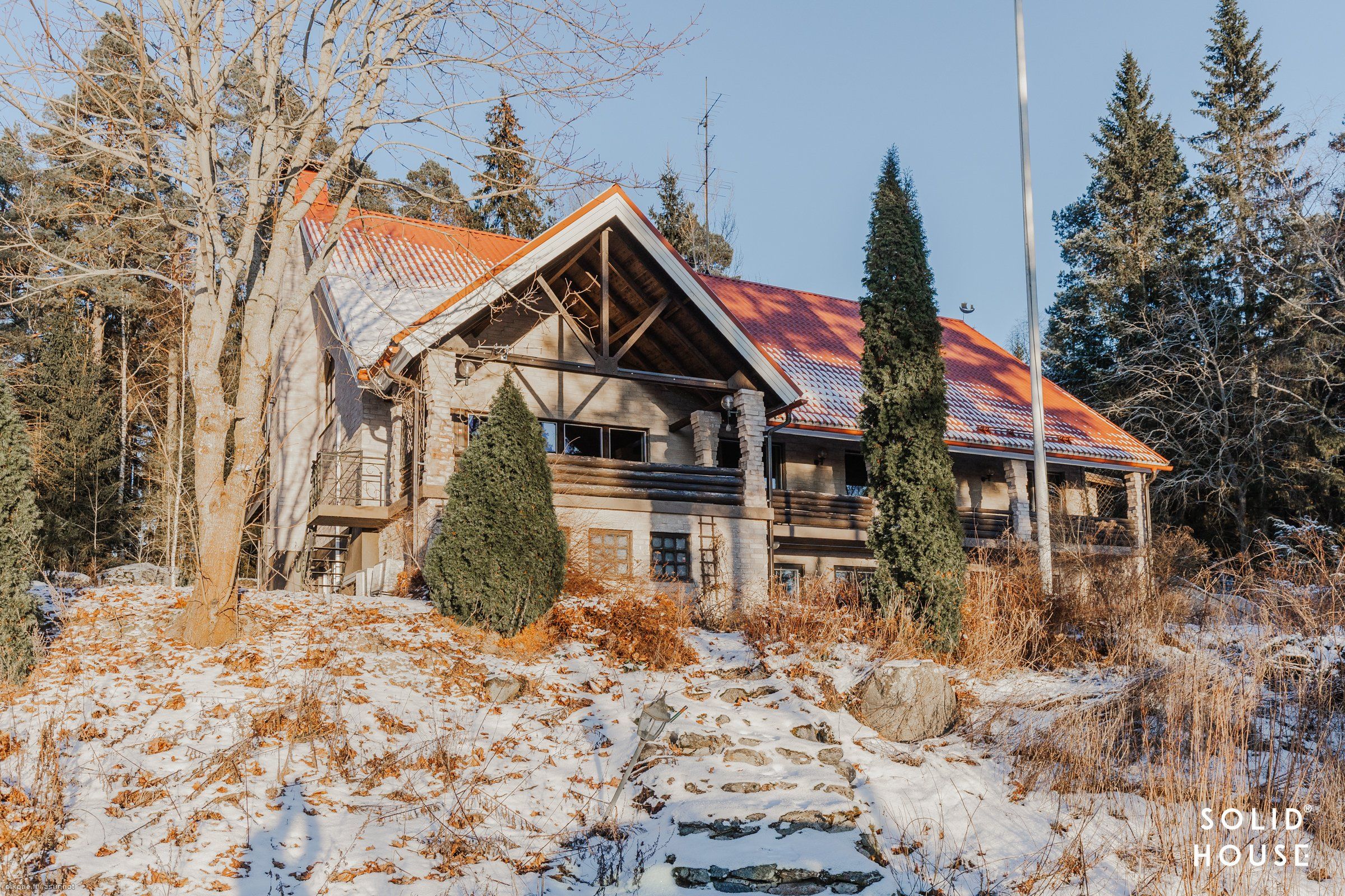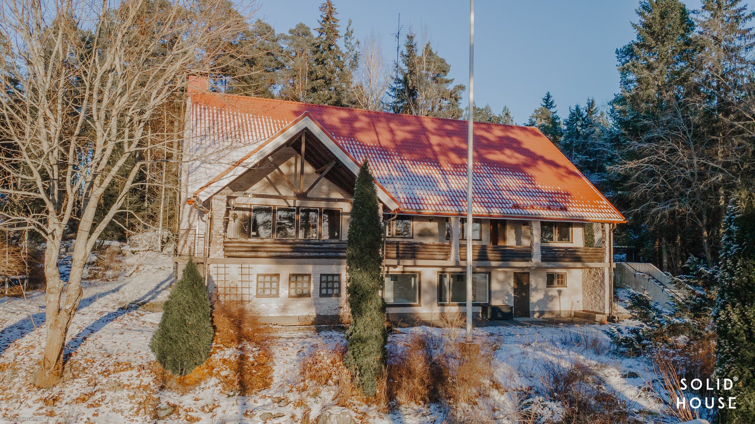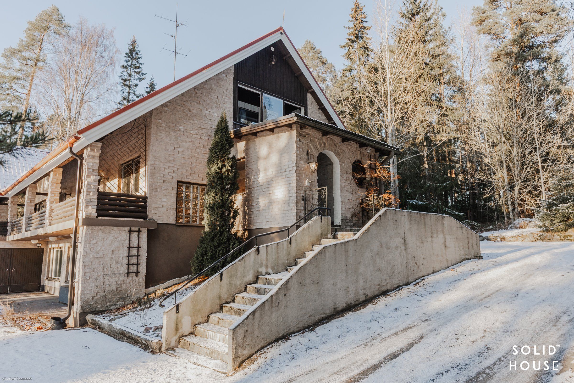 Vuonna 1974 valmistunut, vaikuttava omakotitalo seisoo ylpeänä omalla 5000 neliömetrin tontillaan. Sen avara rinnepiha tarjoaa luonnon moninaisuuden, ja toisesta kerroksesta avautuvat upeat maisemat parvekkeelta, johon on suora kulku.
