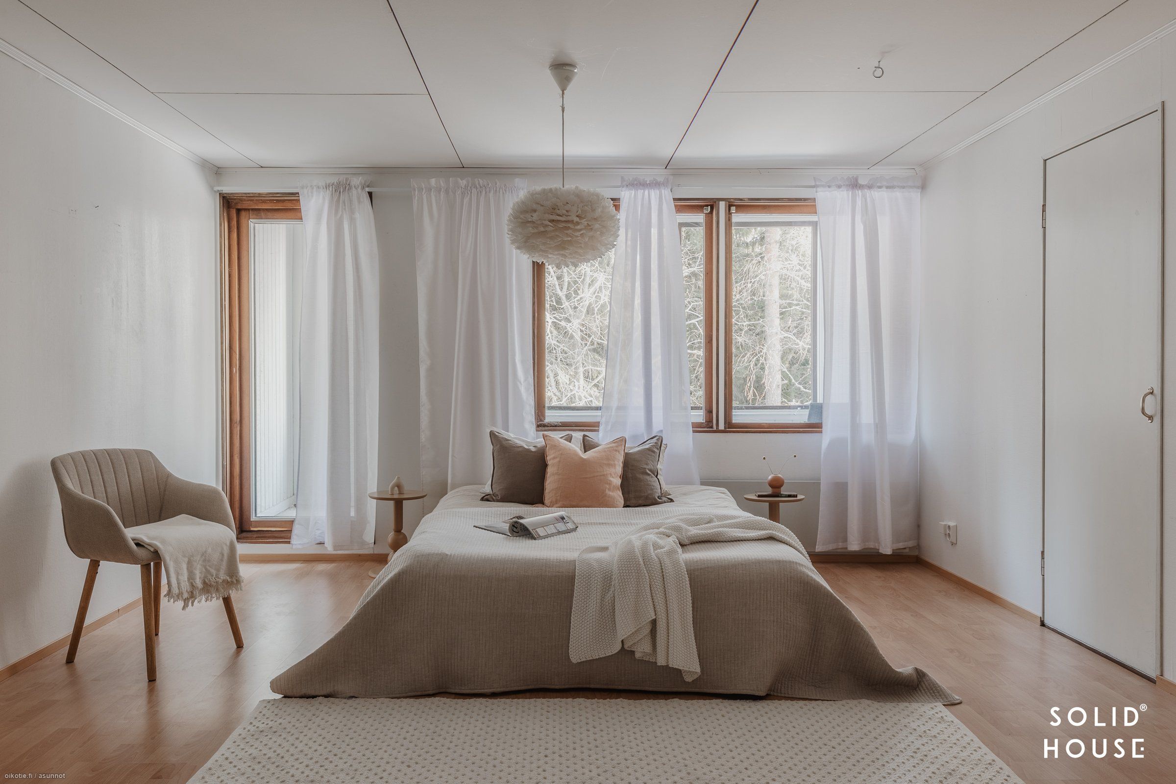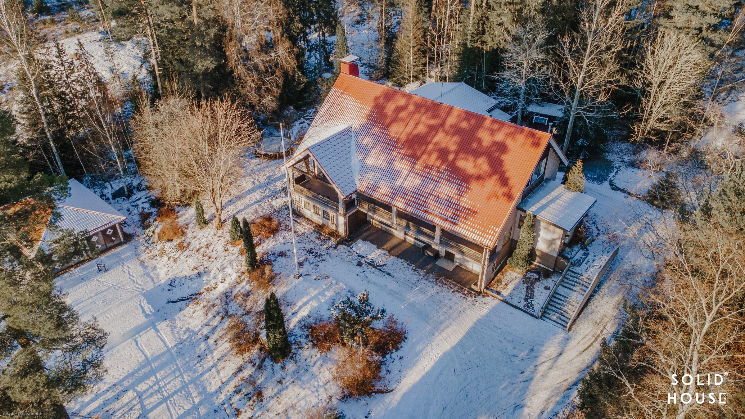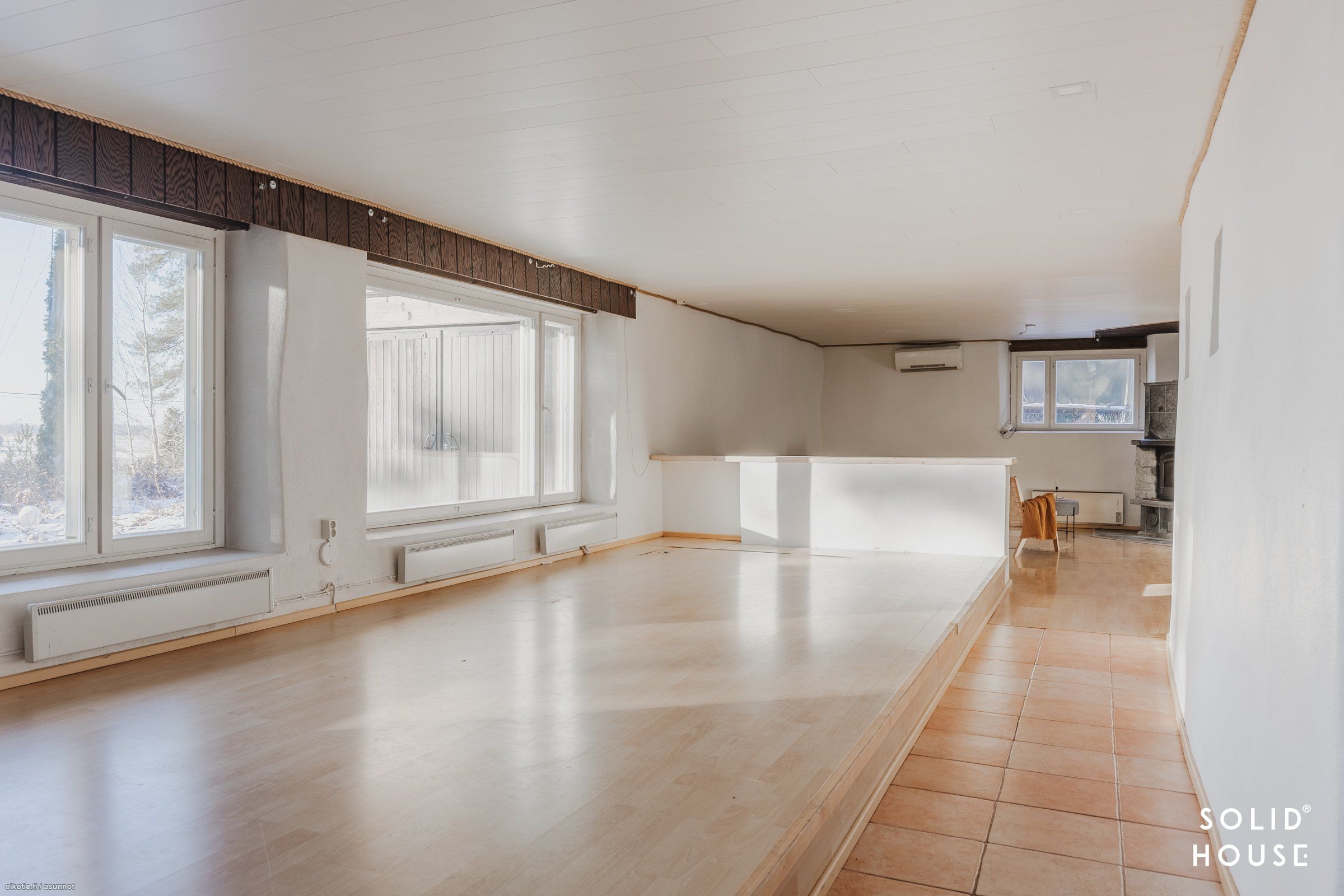 Vuonna 1974 valmistunut, vaikuttava omakotitalo seisoo ylpeänä omalla 5000 neliömetrin tontillaan. Sen avara rinnepiha tarjoaa luonnon moninaisuuden, ja toisesta kerroksesta avautuvat upeat maisemat parvekkeelta, johon on suora kulku.