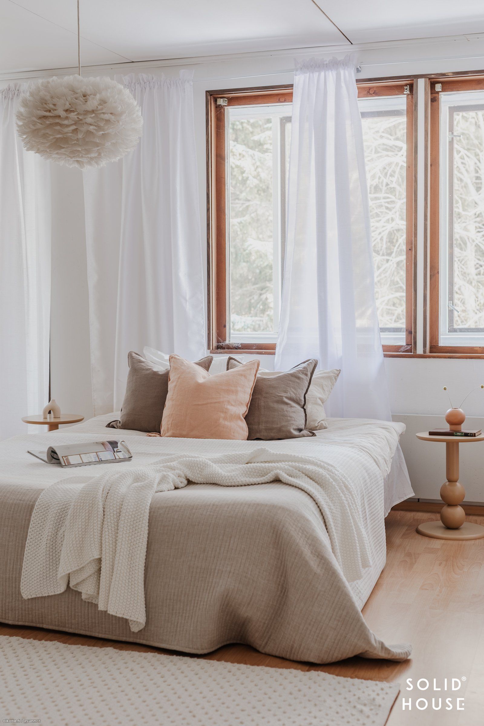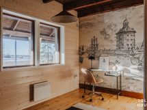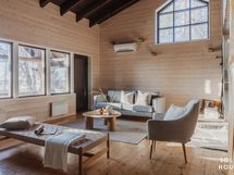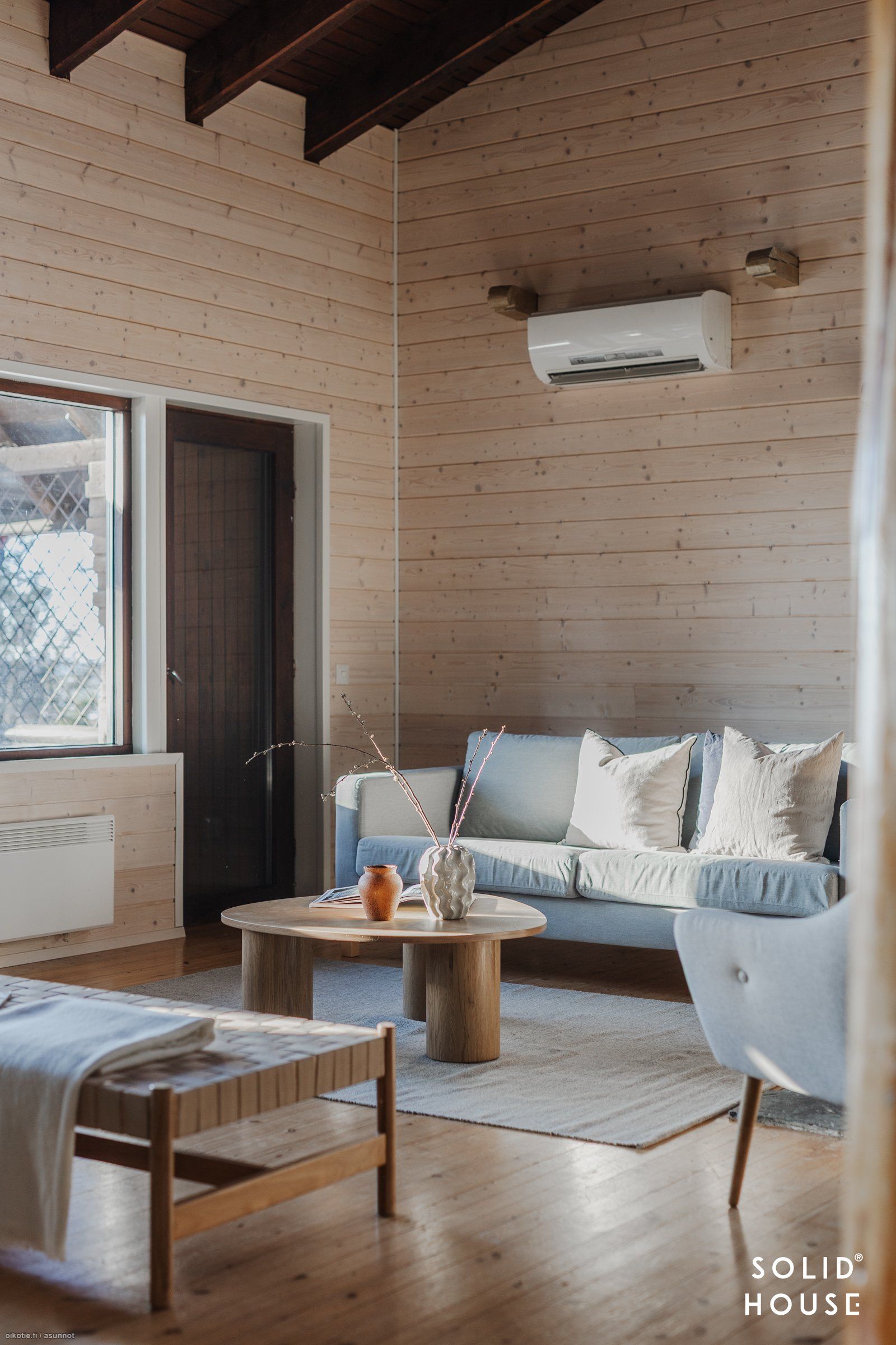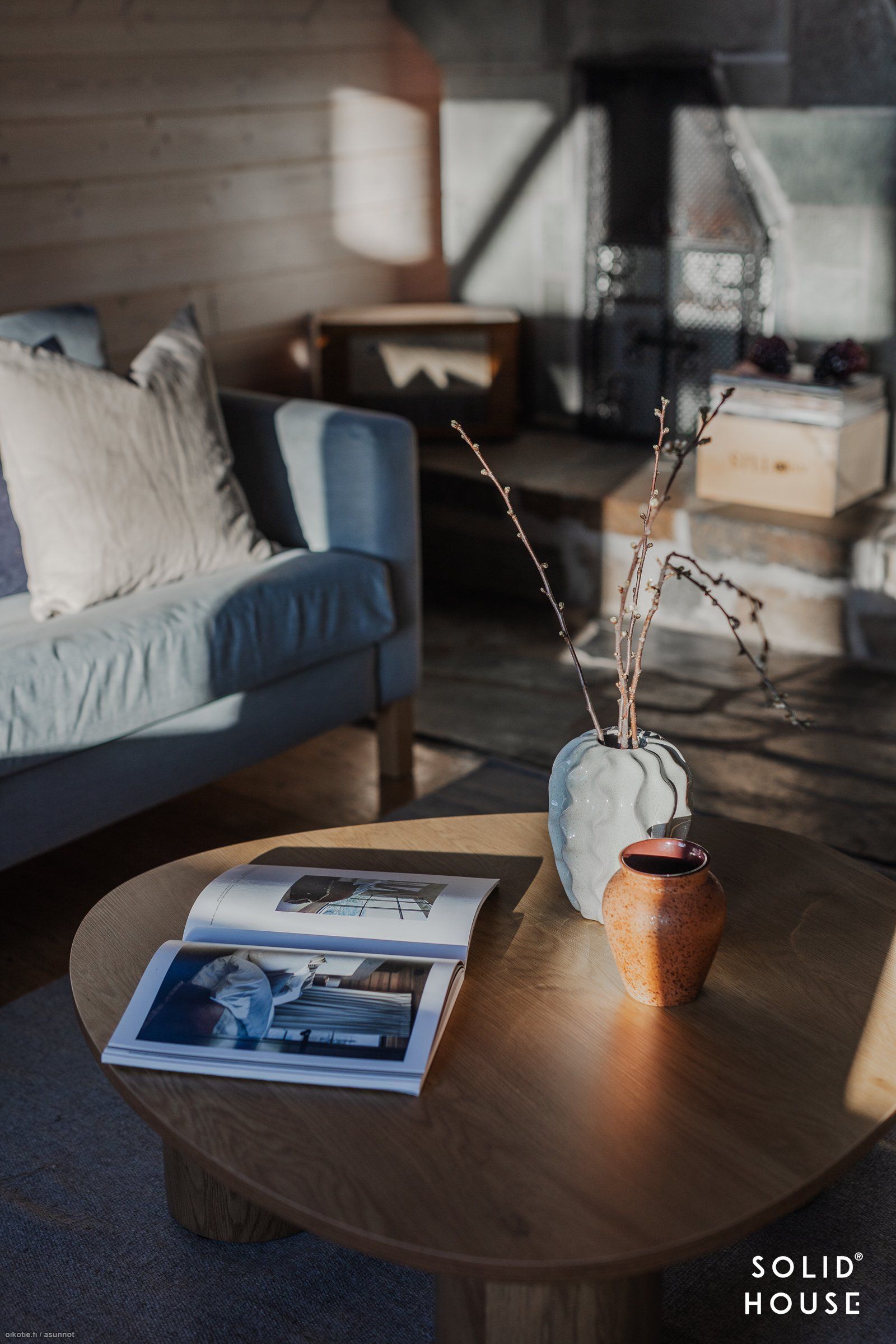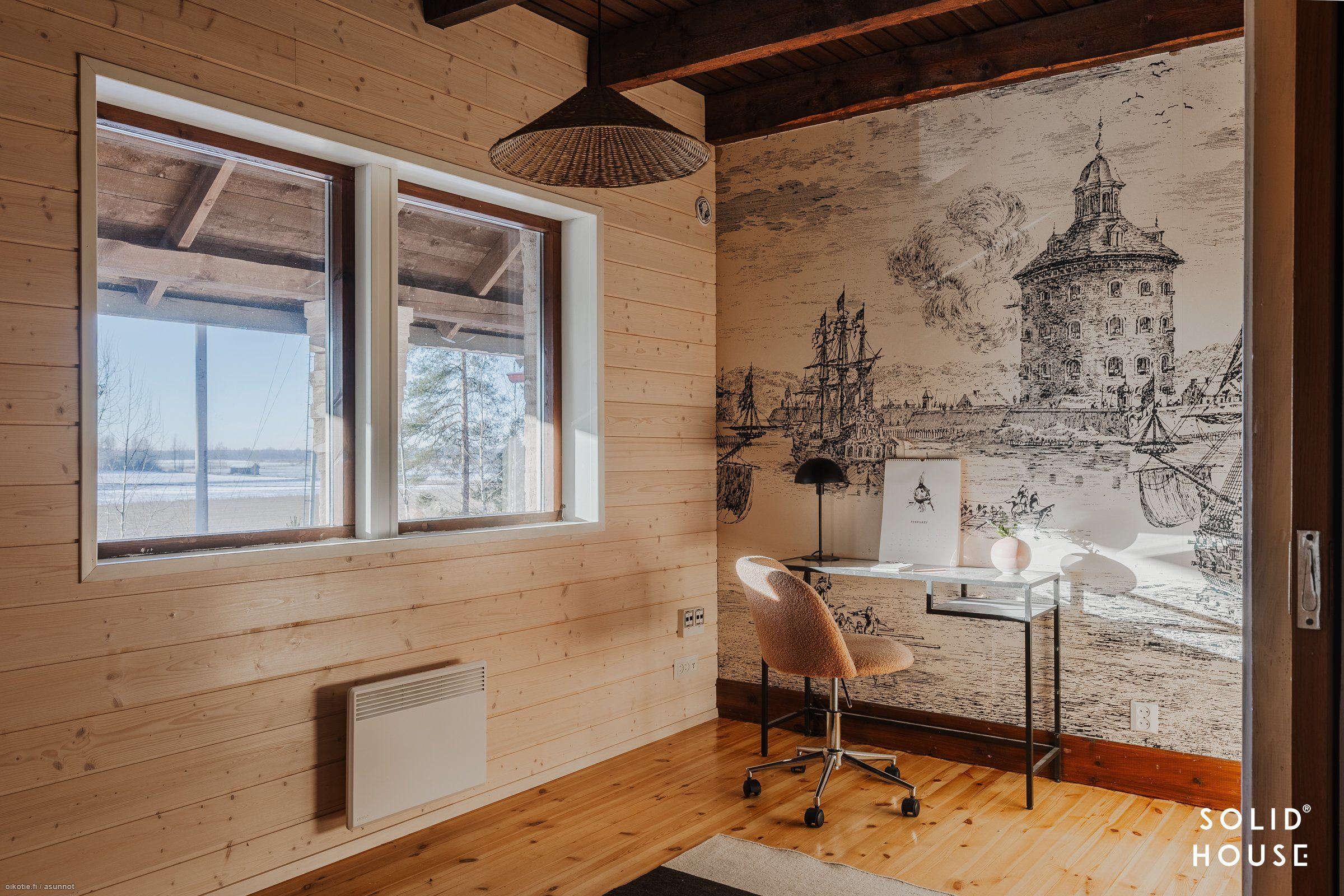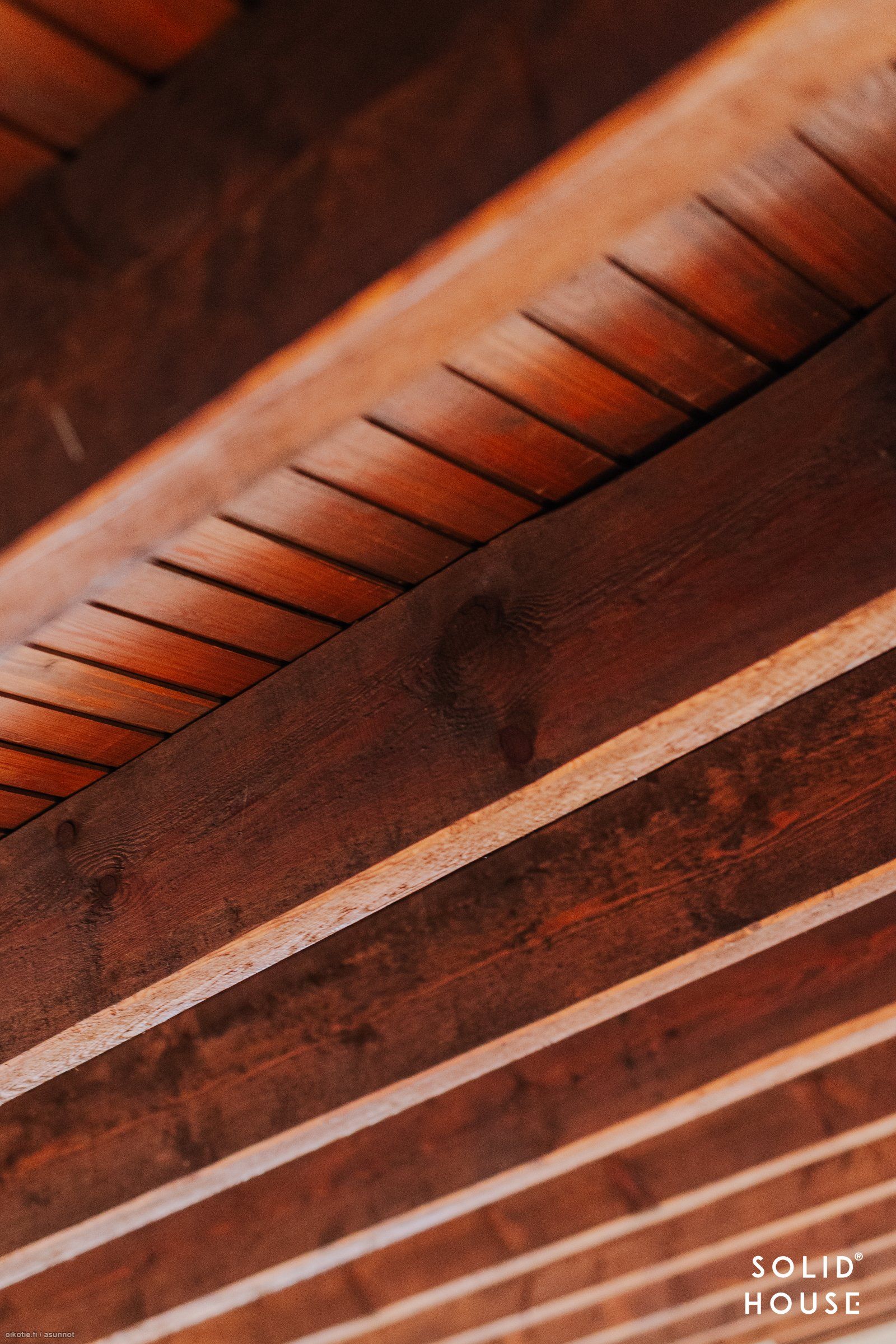 Talossa on viisi makuuhuonetta, joiden keskimmäisestä kerroksesta kuljet kauniita massiivipuupylväin varustettuja rappusia kohti päämakuuhuonetta – kokemus, joka jää mieleen. Yhdistetyssä ruoka- ja olohuone valtava varaava takka, joka jakaa tilan ja tuo lämpöä talven keskelle. Kesällä olohuoneesta avautuu käynti läpi talon mittaiselle parvekkeelle, josta voit ihailla laskevaa ilta-aurinkoa. Ylimmän kerroksen suuressa makuuhuoneessa on lisäksi oma parveke, jossa voit nauttia metsän rauhasta aamu kahvia juoden.