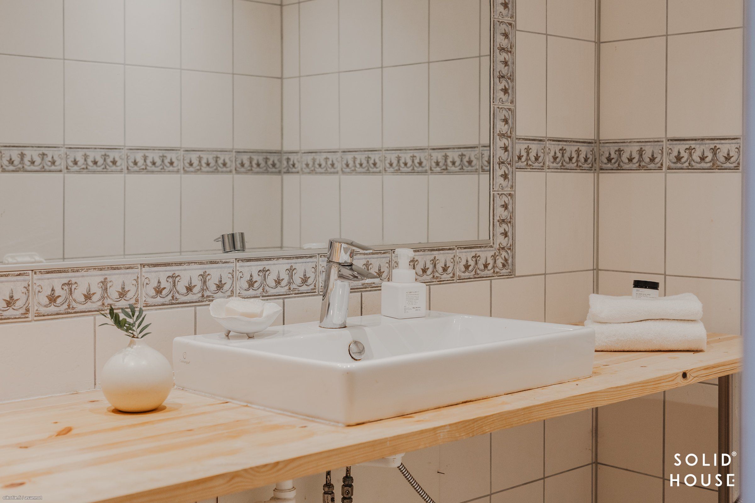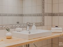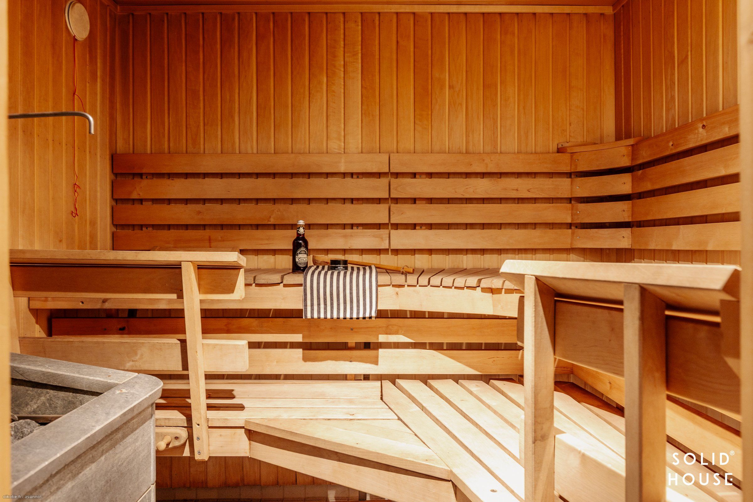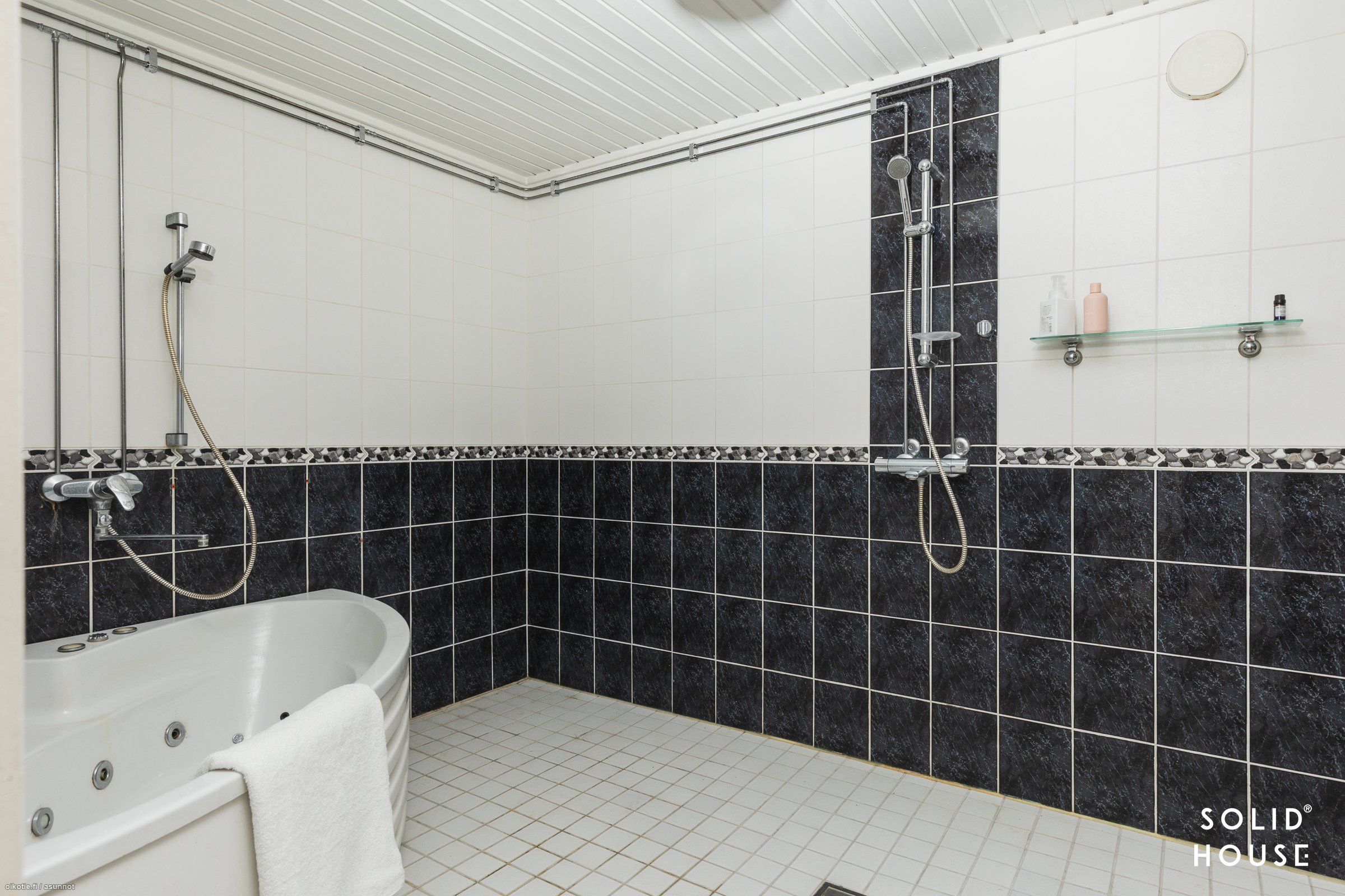 Keittiö on avara ja käytännöllinen, ja siitä kulku suuren alkovin kautta olohuoneeseen. Kylpyhuoneessa kaksi suihkua ja poreallas tuovat arkeen luksusta, ja sauna luonnonkivellä vuorattuine puukiukaineen antaa ikimuistoiset löylyt.