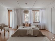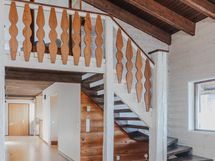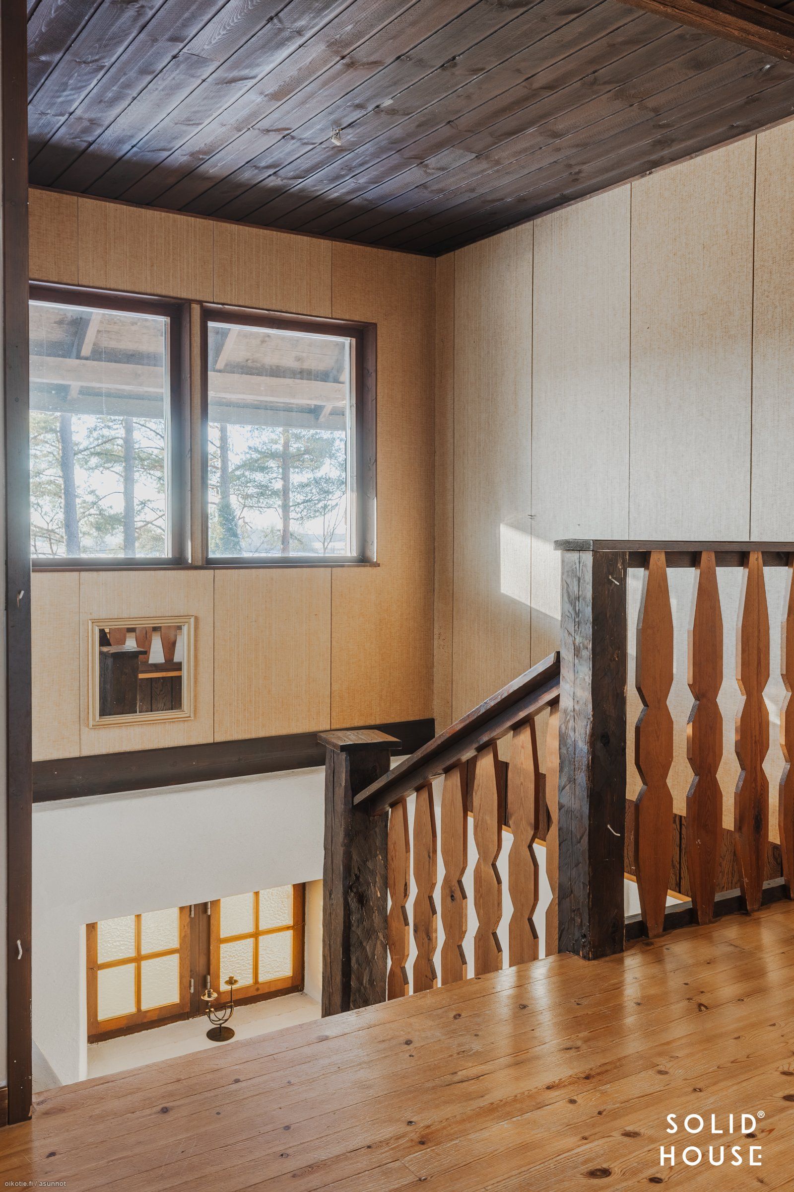 - Keskimmäisestä kerroksesta kulku pitkin kauniita massiivipuu tolpin varusteltuja rappusia kohti asunnon päämakuuhuonetta on jo itsessään vaikuttava kokemus, jossa myös oma parveke.