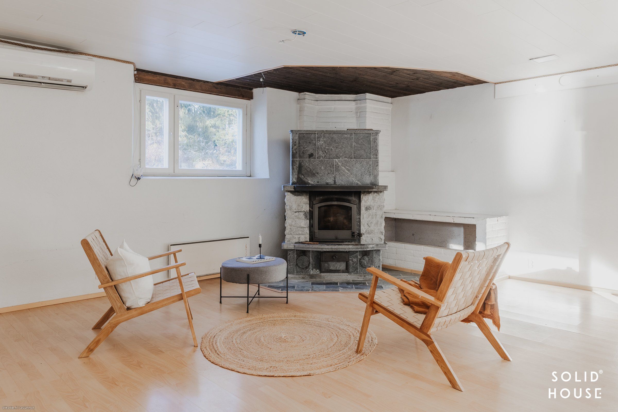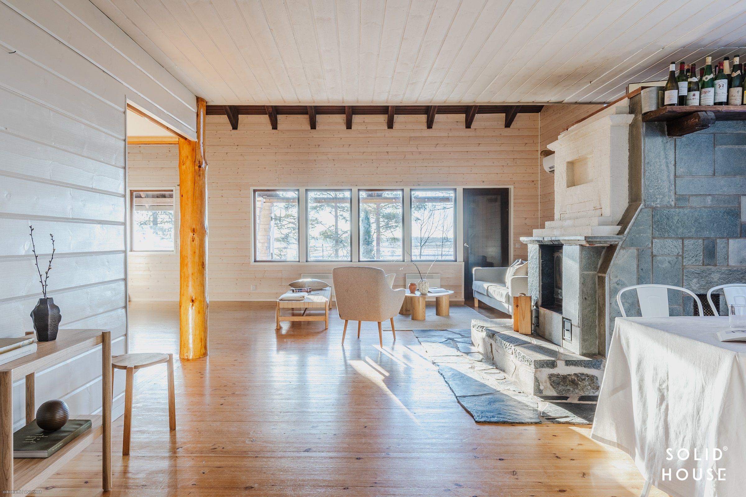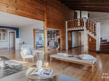 - Yhdistetyssä ruoka- ja olohuoneessa valtava varaava takka jakaa tilan ja tuo lämpöä ja tunnelmaa talven keskelle. Kesällä luonnon kukkiessa olohuoneesta käynti läpi talon mittaiselle parvekkeelle, josta aukeaa avaramaisema jollaista ei toisesta kohteesta löydy tällä etäisyydellä. kohteessa on miljoona mahdollisuutta ja upeat maisemat katsella laskevaa ilta aurinka.