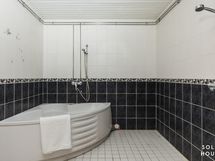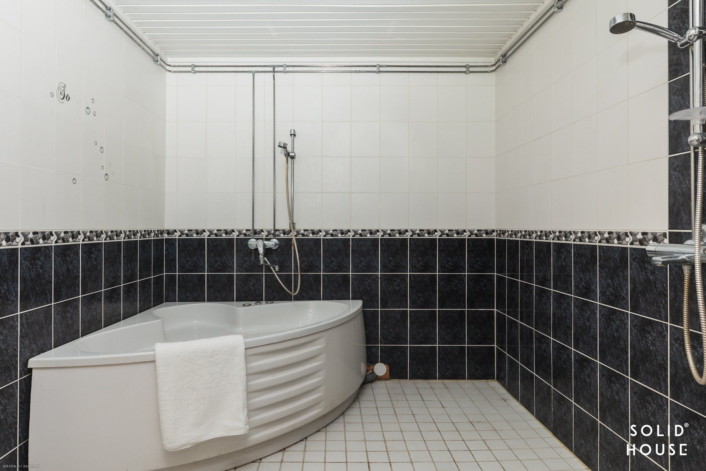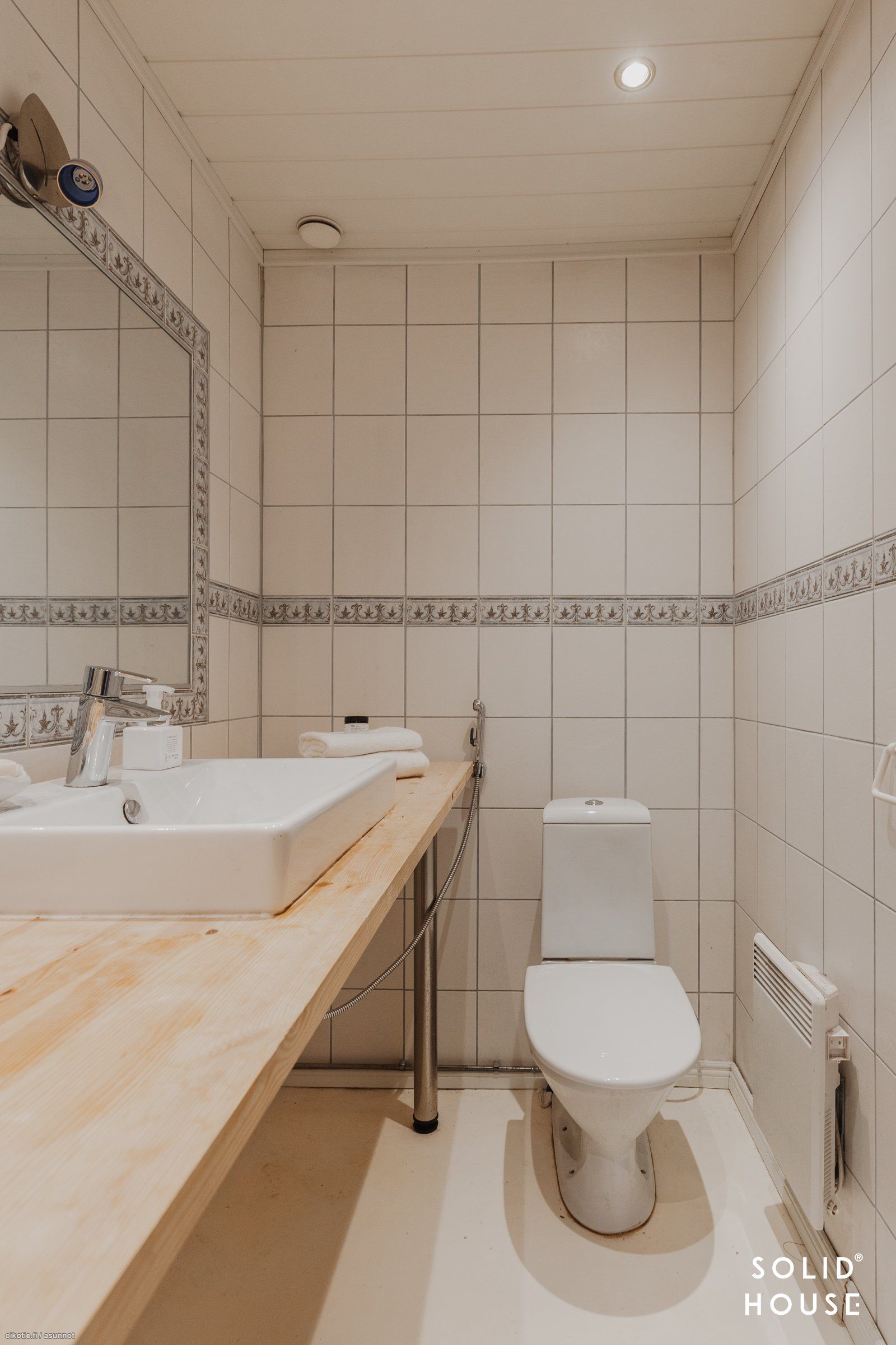 - Pesutilojen varusteet: Suihku, poreamme ja lattialämmitys. Pesutilojen kuvaus: Kaksi suihkua ja poreallas. Erillisten WC:n lukumäärä: 2. Erillisen WC:n varusteet: WC-istuin, peili, bidee-suihku, lattiakaivo, pesuallas ja lattialämmitys. Erillisen WC:n kuvaus: Asunnon molemmissa kerroksissa erillinen wc. Alemman kerroksen wc:ssä on lattialämmitys ja keskimmäisen kerroksen wc:ssä bideesuihku.