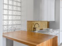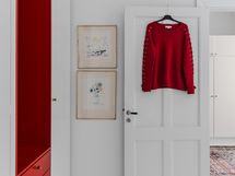 - Ruokailutilassa on mittatilaustyönä teetetyt kaapistot. Seinät: maalattu. Lattia: kalanruotoparketti.