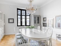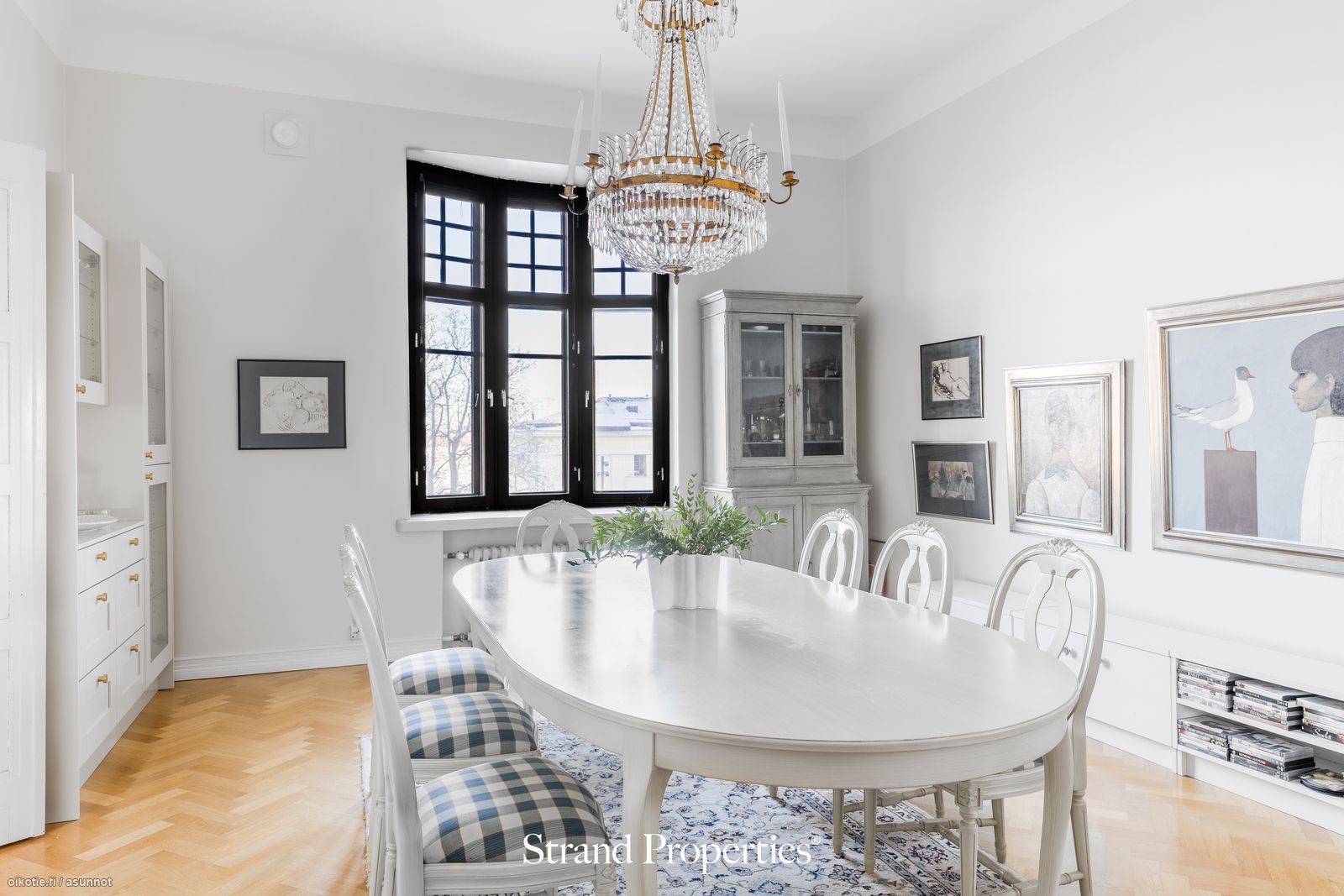 Tämä kokonaisuus hurmaa jo ensiaskeleilla: korkeat huoneet, kauniit yksityiskohdat ja rauhallinen sijainti luovat kodin, jossa viihtyy vuodesta toiseen.