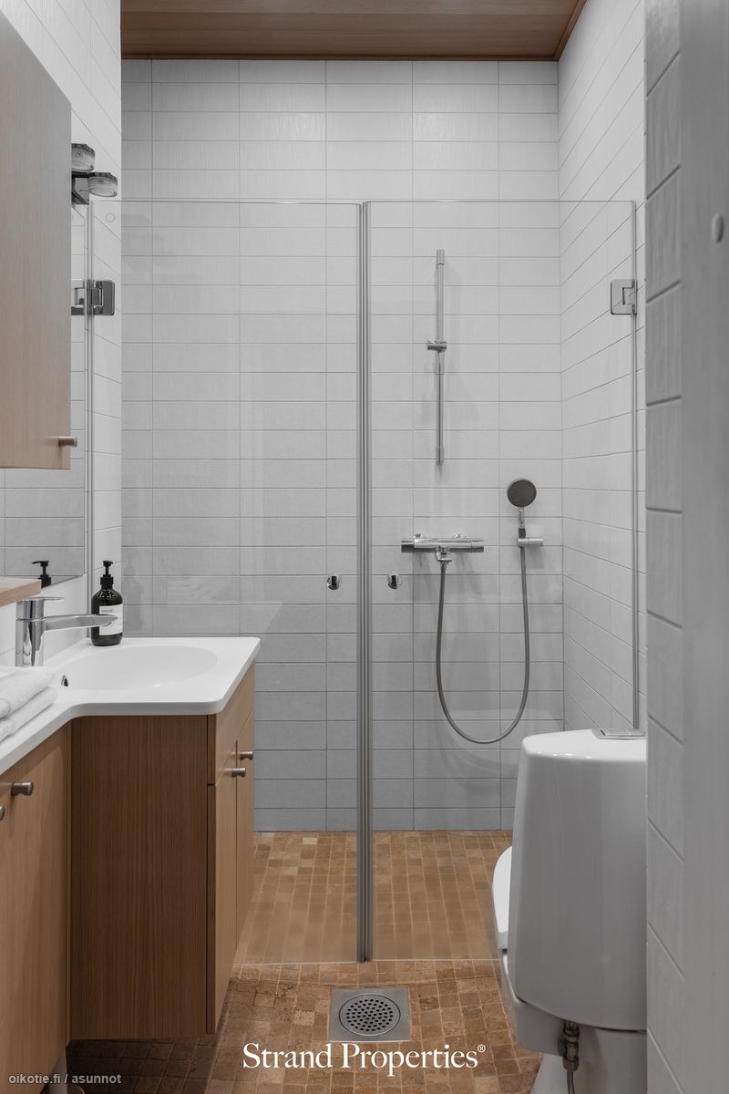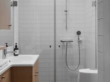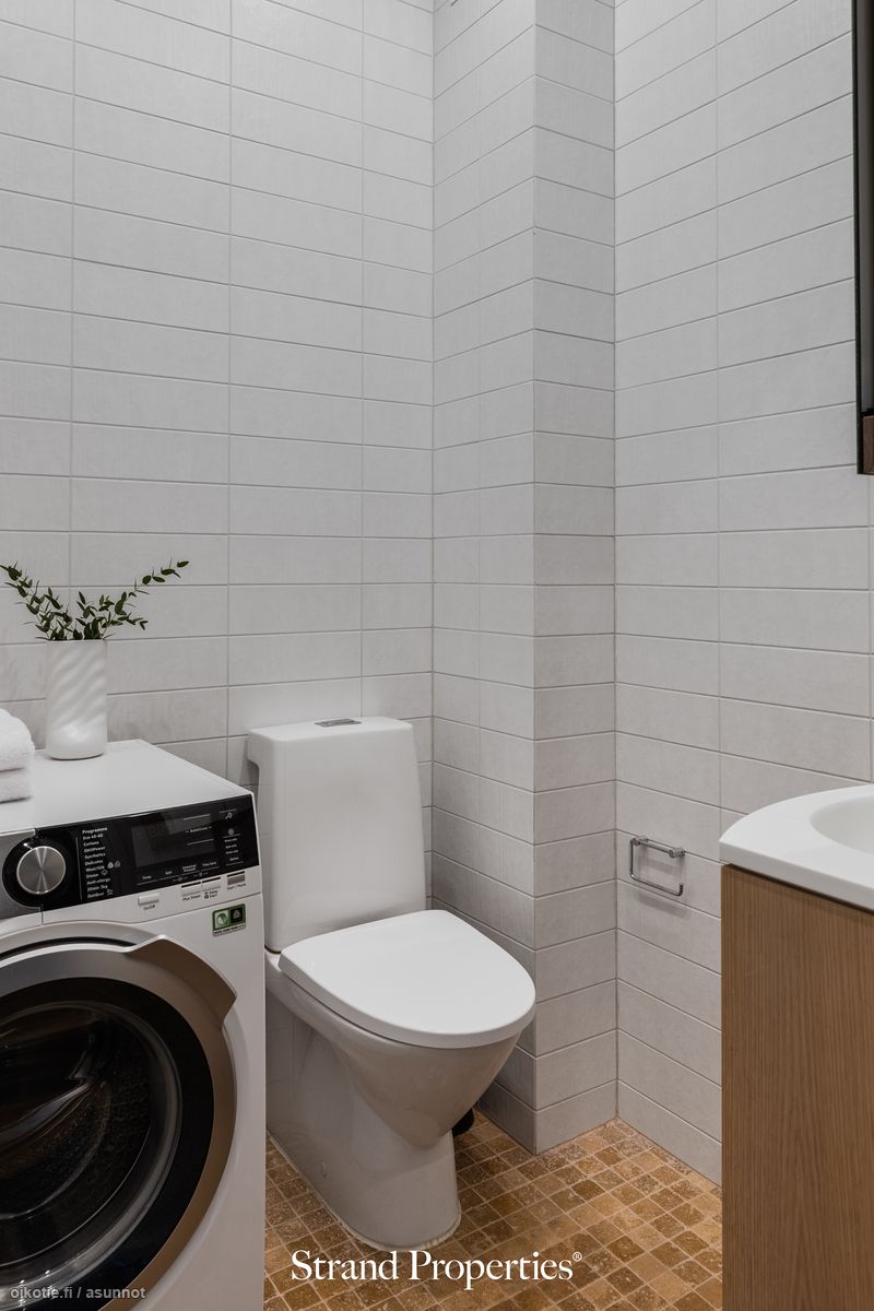 - Pesutilojen kuvaus: 2 suihkua. Perussuihku taloyhtiön vastuulla, toinen suihku osakkeenomistajan vastuulla. Varustus: suihkuseinä, lattialämmitys, wc-istuin, suihku, peili. Erillisen WC:n kuvaus: Peilikaappi, allaskaappi, bidee-suihku, pyyhekuivain, pesukoneliitäntä.