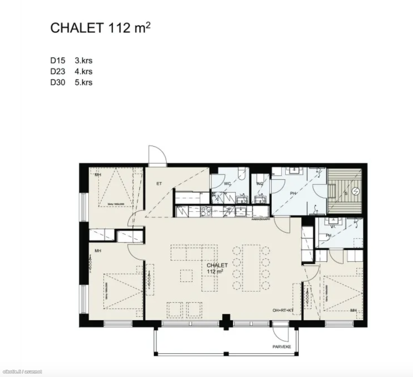 - Pesutilojen kuvaus: Lattialaatta 5x5, seinälaatta 60x60. Varustus: suihkuseinä.