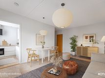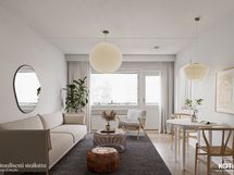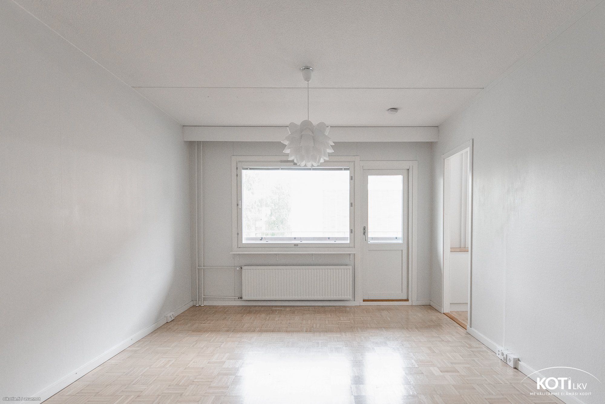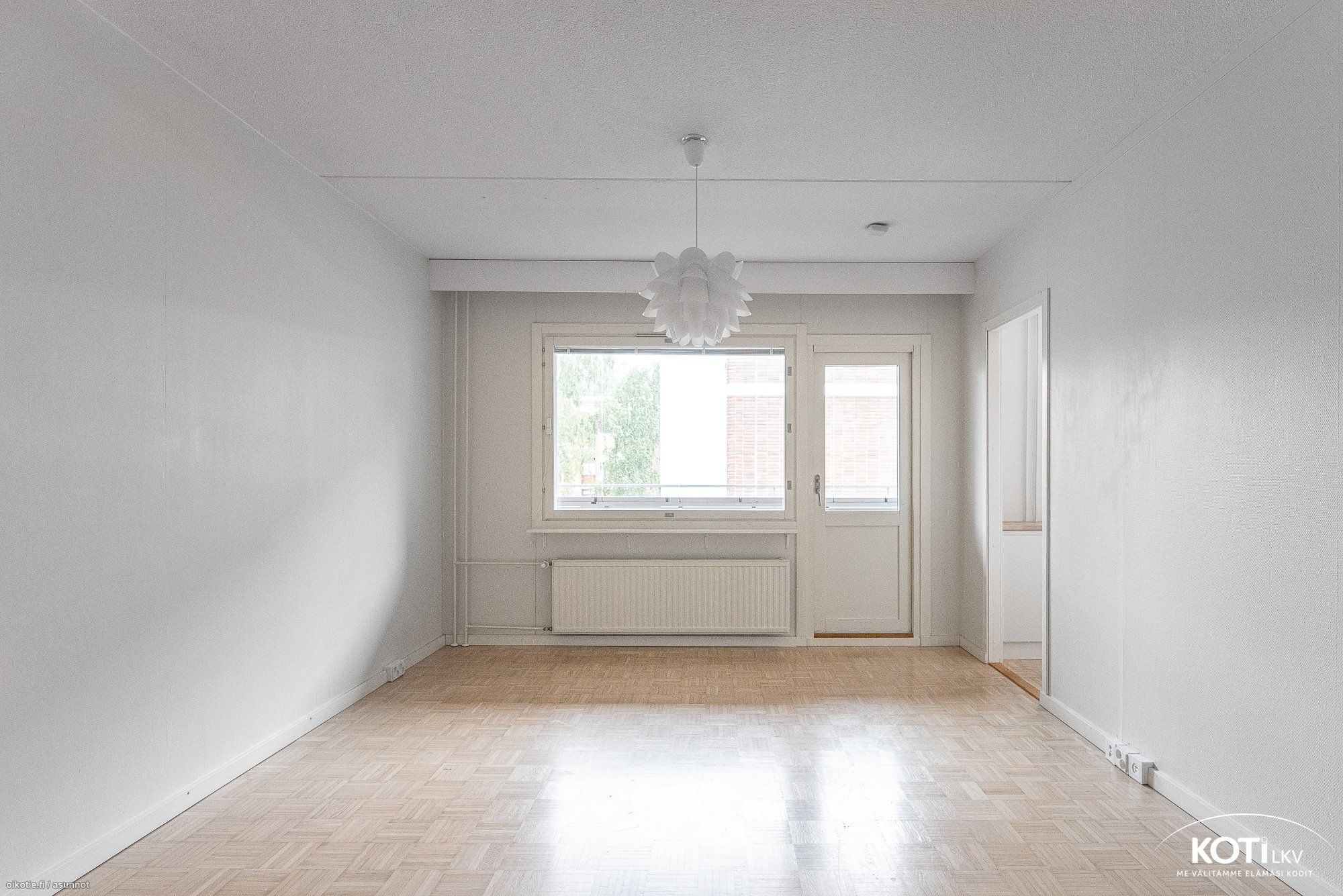 - Lasikuitutapetti kahdella seinällä, toinen seinä maalattu tapetti. Olohuoneesta käynti parvekkeelle.