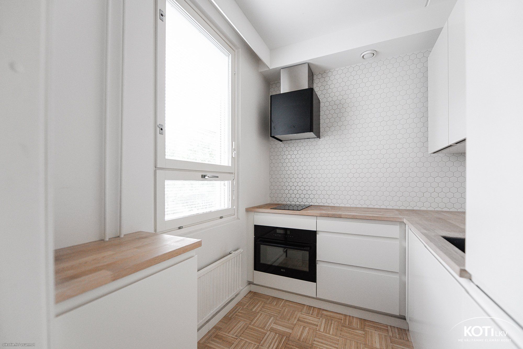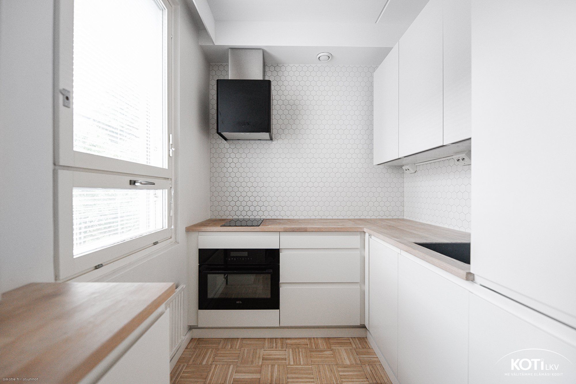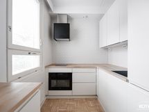 Asunnon tyylikäs keittiö on uusittu vuonna 2019. Keittiöremontin yhteydessä on uusittu kodinkoneet, kaapistot ja keittiön sähköt. Asunnon vaaleaksi lakattu parkettilattia on hiottu ja lakattu vuonna 2019, myös makuuhuoneen vaatekaappi on uusittu ja vaatehuone remontoitu 2019.