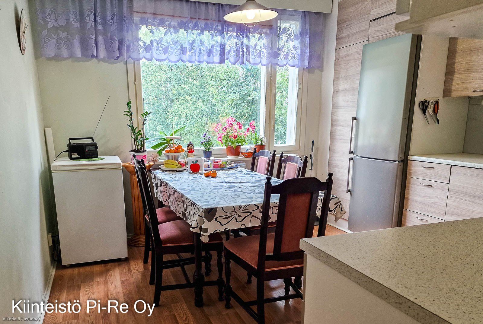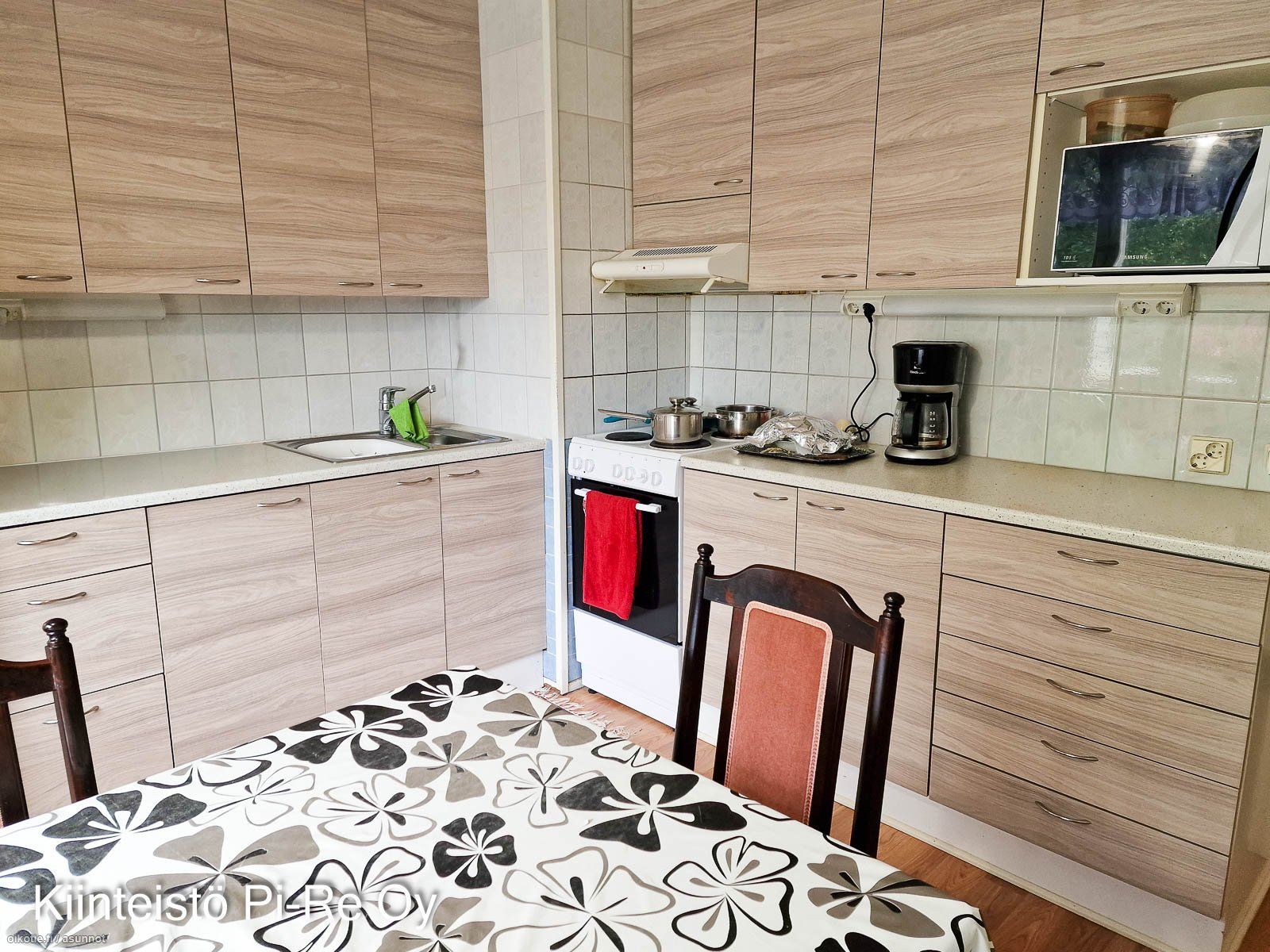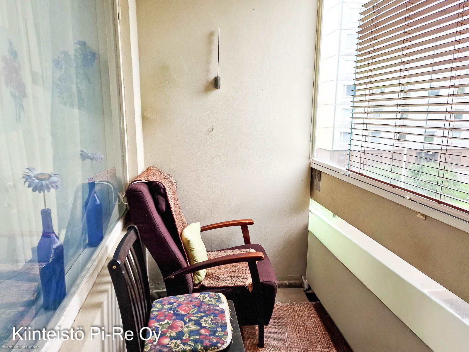 - KEITTIÖ: Jääkaappi/pakastin, sähköliesi ja liesituuletin. Lattiassa laminaatti ja seinät maalatut. Keittiöön mahtuu hyvin ruokapöytä ja tilaa jää kokkailulle. Keittiön kaapinovet uusittu 2024. OLOHUONE: Lattiassa laminaatti ja seinät tapetoidut. Olohuoneesta käynti parvekkeelle sekä toiseen makuuhuoneeseen. MAKUUHUONEET: Laminaatit lattiassa ja seinät tapetoidut/maalatut. Molemmissa makuuhuoneissa kaapistot. SAUNAOSASTO: Taloyhtiössä sauna. PESU / WC-TILAT: Kylpyhuoneessa lattiassa laatat ja seinät kaakeloidut. Varustuksena suihku, suihkuseinä, käsienpesuallas, peilikaappi sekä pyykinpesukoneelle liitos. Kylpyhuone remontoitu noin 10 vuotta sitten. PARVEKE / TERASSI: Lasitettu parveke. SÄILYTYSTILAT: Makuuhuoneissa kaapistot ja eteisessä vaatehuone. Toisen makuuhuoneen liukuovet uusittu 2024. Huoneistokohtaiset varastot.