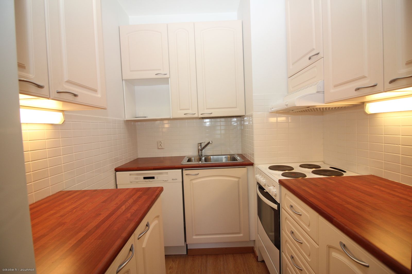 Toisen kerroksen näppärä kaksio. Vaatehuoneen ja kaapistojen ansiosta paljon säilytystilaa. Kylpyhuone uusittu, löytyy paikka pyykinpesukoneelle. Keittiössä astianpesukone sekä paljon kaappitilaa. Lähimmät päivittäistavarakaupat kävelymatkan päässä. Energialuokka D2007.